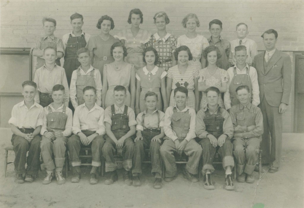 Here is another photo grade school photo, this one from Grandpa’s 8th Grade year. This is a much clearer picture, and not a photocopy. This was taken outside the old Plain City School in Plain City, Weber, Utah. This is a clearer picture than the one I had previously shared. I am sharing this in honor of what would have been his 105th birthday this week.
