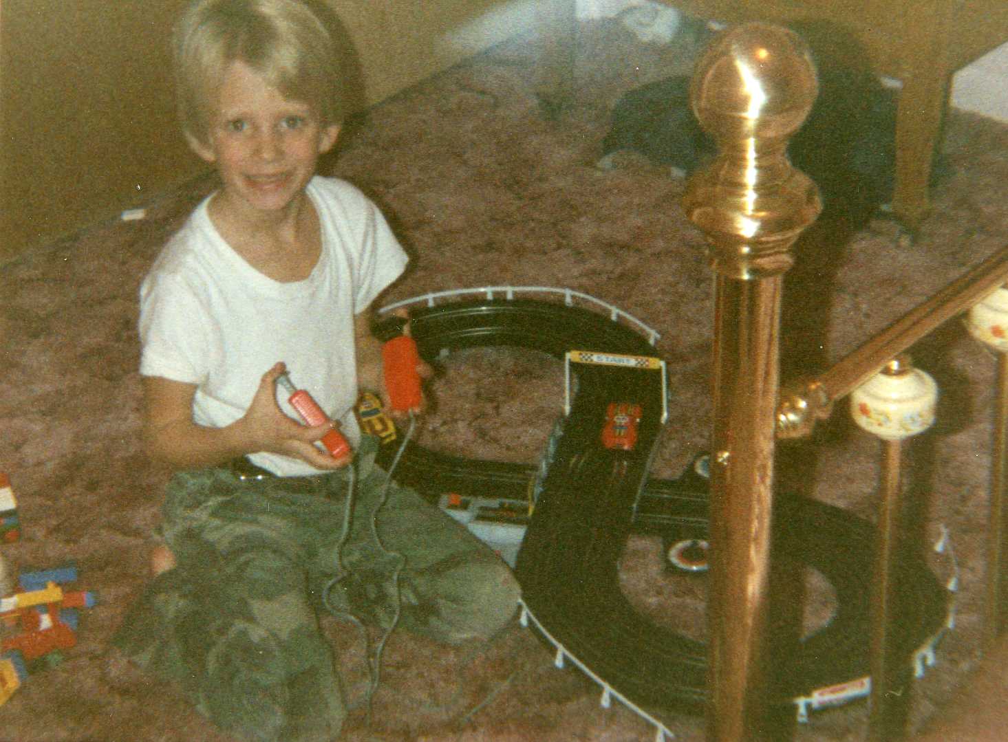 This picture is taken in my sister’s bedroom with the pink carpet and brass bed. This is probably a day or two after Christmas since I had moved the location of the track. Notice the legos, probably a new addition as well. The longer hair, the cargo pants, and a new racetrack, and I look like I am having a ball. I remember loving that little track (and many years of legos) but my greatest memory of this Christmas is something else.