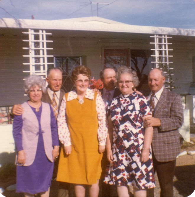 The four people in this photo I know are the same as above. Hopefully I can get some more by putting this online. But since it is the same people, you can reference above for information. This photo is also believed to be in Queen Creek.