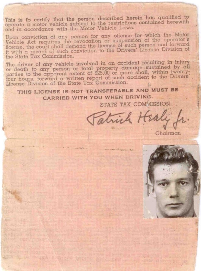 His chauffeur’s license from 1951, luckily the photograph is still attached and you can see his signature.