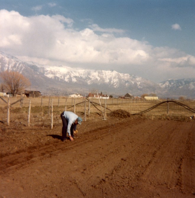 As I grew up, I did not get to see my Grandpa and Grandma Ross more than a couple times a year. When we went to visit in Utah, there was always a trip to the garden. The garden had its own mythical place in our minds. It scared me as a kid, I don’t know why. It was like it could eat me it was that alive. As time went on, I came to appreciate how much hard work and effort it took. We reaped its bounteous blessings as well. As I worked in the garden this morning, I thought to go through and see what photos I have of Grandpa and Grandma’s garden. Here is what I could file.