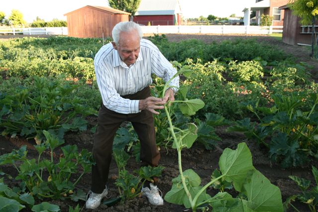 Milo and Gladys Ross, 2004, the garden struggled this year because Grandpa was spending all his time taking care of Grandma, and Grandma kept sabotaging it by turning on the water all the time and regularly flooding parts of it out.