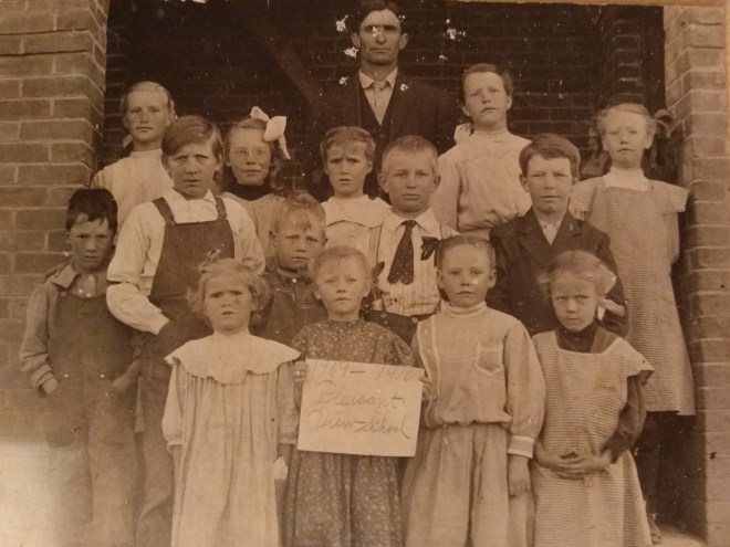 This was an interesting find. This was in a stack of photos I scanned related to the Andra family recently. The interesting part is that it says Pleasant View School, which I am unable to locate.