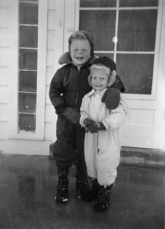 Doug was born July 1952, Mom March 1954, so this could very well be the winter of 1958-1959. The house is located at 142 North State Street in Richmond, Utah and is still there. I have written on this before, but my Grandparents, Norwood & Colleen Jonas, built this home.