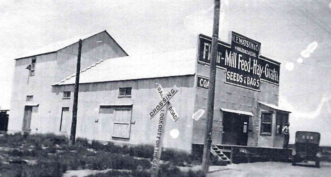 Immediately behind from this view and across the tracks is the Watson Farm Supply Building.