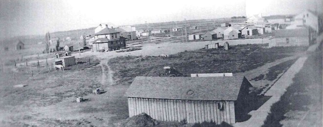 Another old photo of Paul, Idaho. To the left, center of the photo is the Paul Train Depot. The depot was located about half way between Main Street and 1st West Street on the north side of West Railroad Street and south of the tracks. This photo was very early on, probably before 1917 as the Amalgamated drainage ditch does not appear in to be running through the photo. Also, the buggy in the front and no parked cars elsewhere provide some hint.