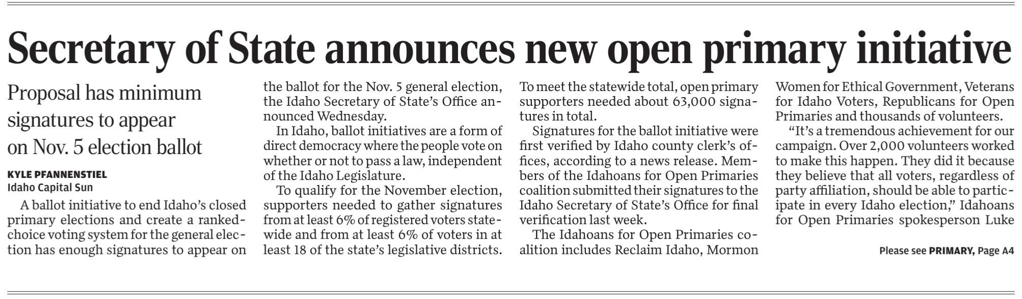 Open Primaries Initiative is voice of Idaho citizens, not ‘pernicious plot’ →