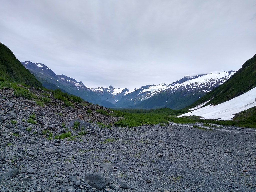 We saw multiple glaciers while in Alaska. We stopped and went through the Begich, Boggs Visitor Center. It was interesting to see how close the center once was near glaciers. Now you cannot even see the Portgage Glacier from it. We went and hiked up the Byron Glacier Trail.