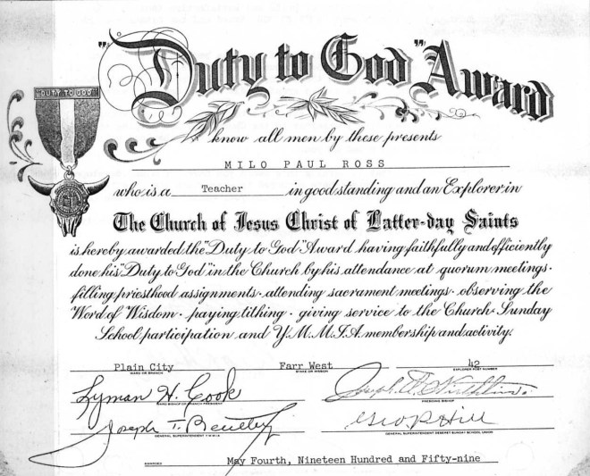 Milo James Ross commented about Milo Paul Ross receiving his Duty to God award on 27 April 1959