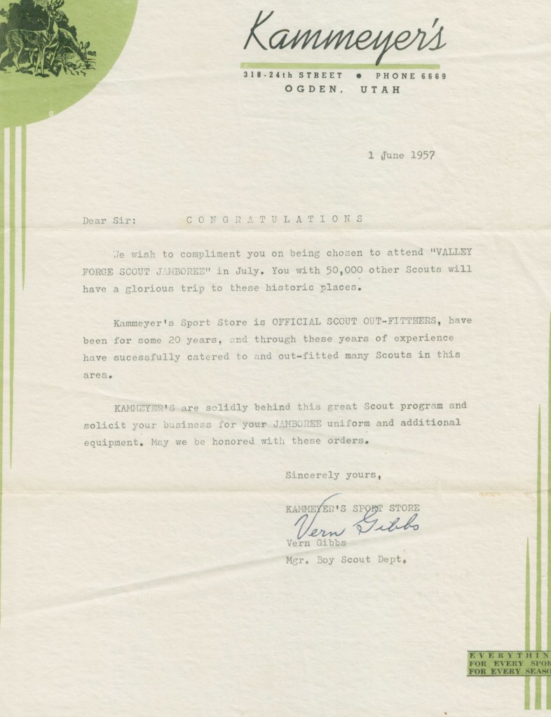 For those LDS Scouts, Harold B Lee and Delbert L Stapley spoke to the boys on Sunday. Here is a letter Dad wrote home while there.