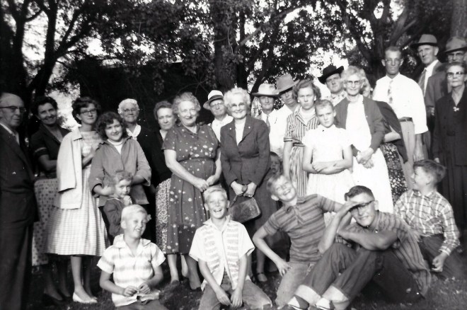 I thought I would make this photo available from the a 31 August 1957 Sharp Family Reunion.  There are a few unknowns in this photo.