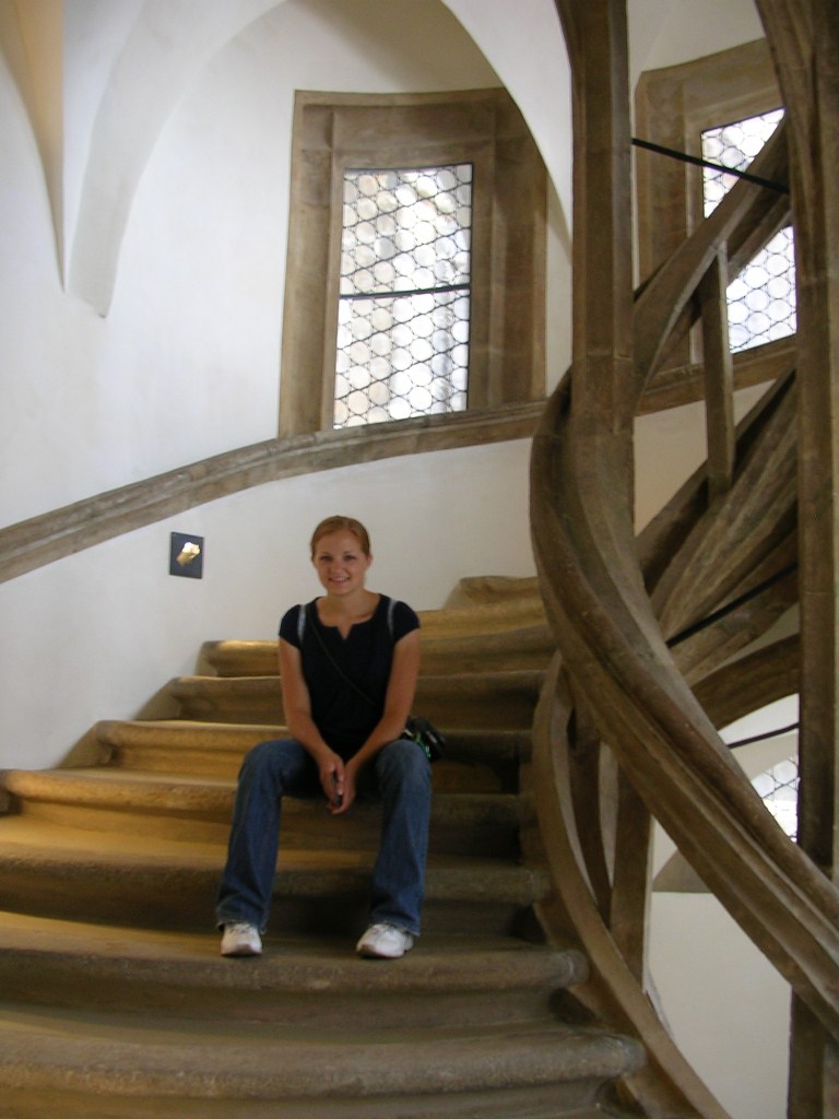 Amanda on spiral stone staircase in Albrechtsburg Meissen