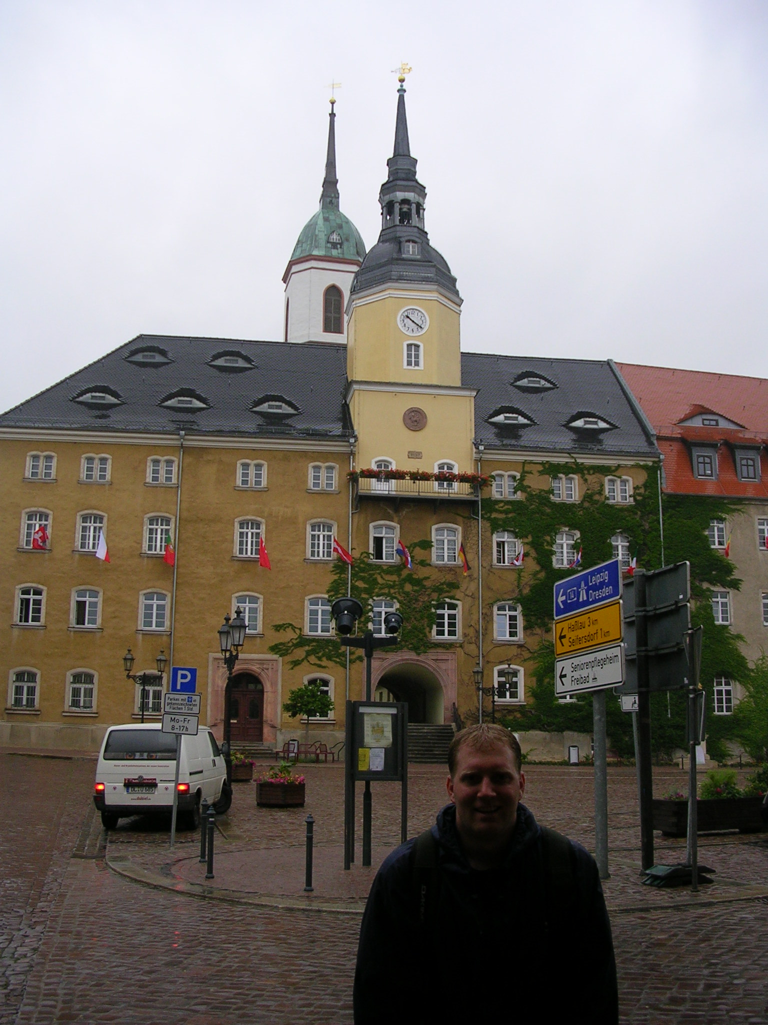 Todaz we said good-bze to our hostel in Dresden and made our waz to Augsburg. Since were so close to the Andra-Schneider familz area, we made a special trip to Roßwein where several generations of mz familz are from.