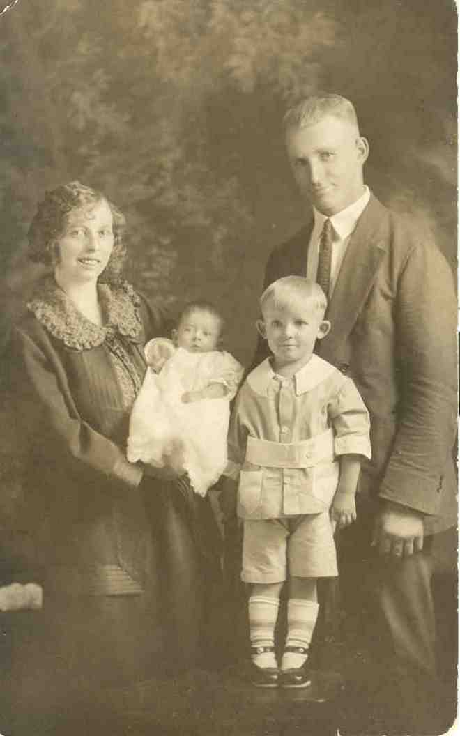 1926, Bill with his arm around Mary, William standing in front of Mary, June beside William, and holding Millie.