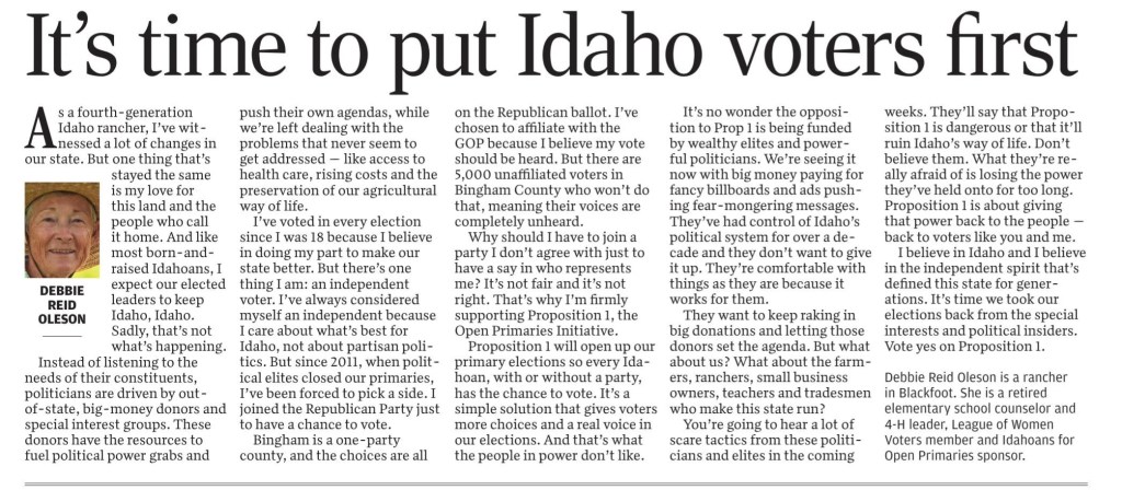 “At this time there was much pressure on the local LDS communities by the Idaho politicians who were strongly anti-Mormon, about the Church practice of polygamy.  75% of the population lived in the eastern half of the state and about 20% of those were L. D. S. which meant that they represented a large voting block.