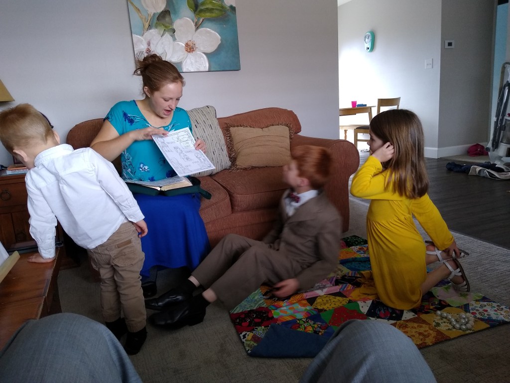 The above photo was snapped after our little Ross home Sacrament. The one below I snapped while Amanda was doing our Sunday School/Primary portion of church. These were golden days. I am very glad to be back to church in a full social setting, but the intimate home setting was also treasured.
