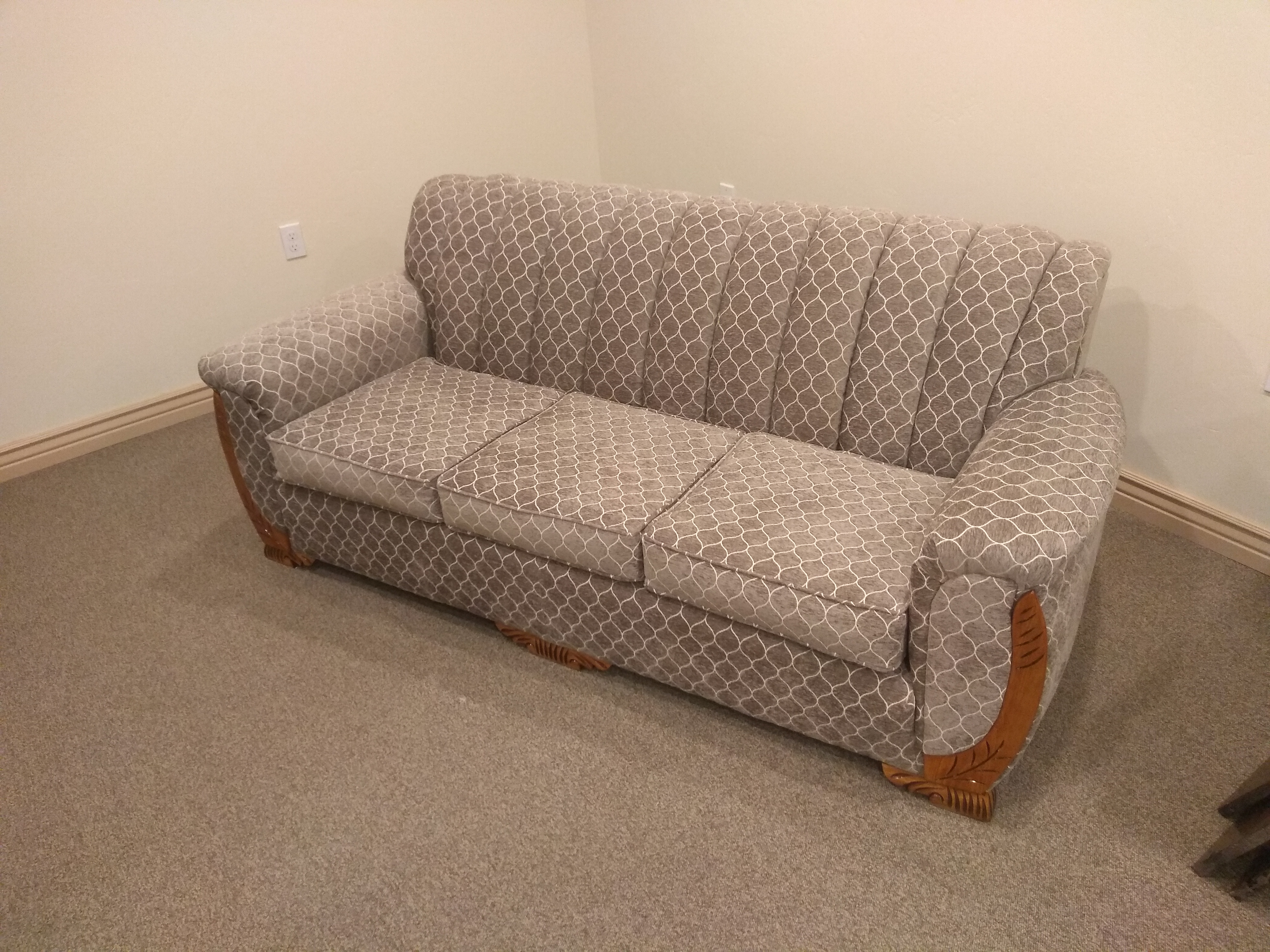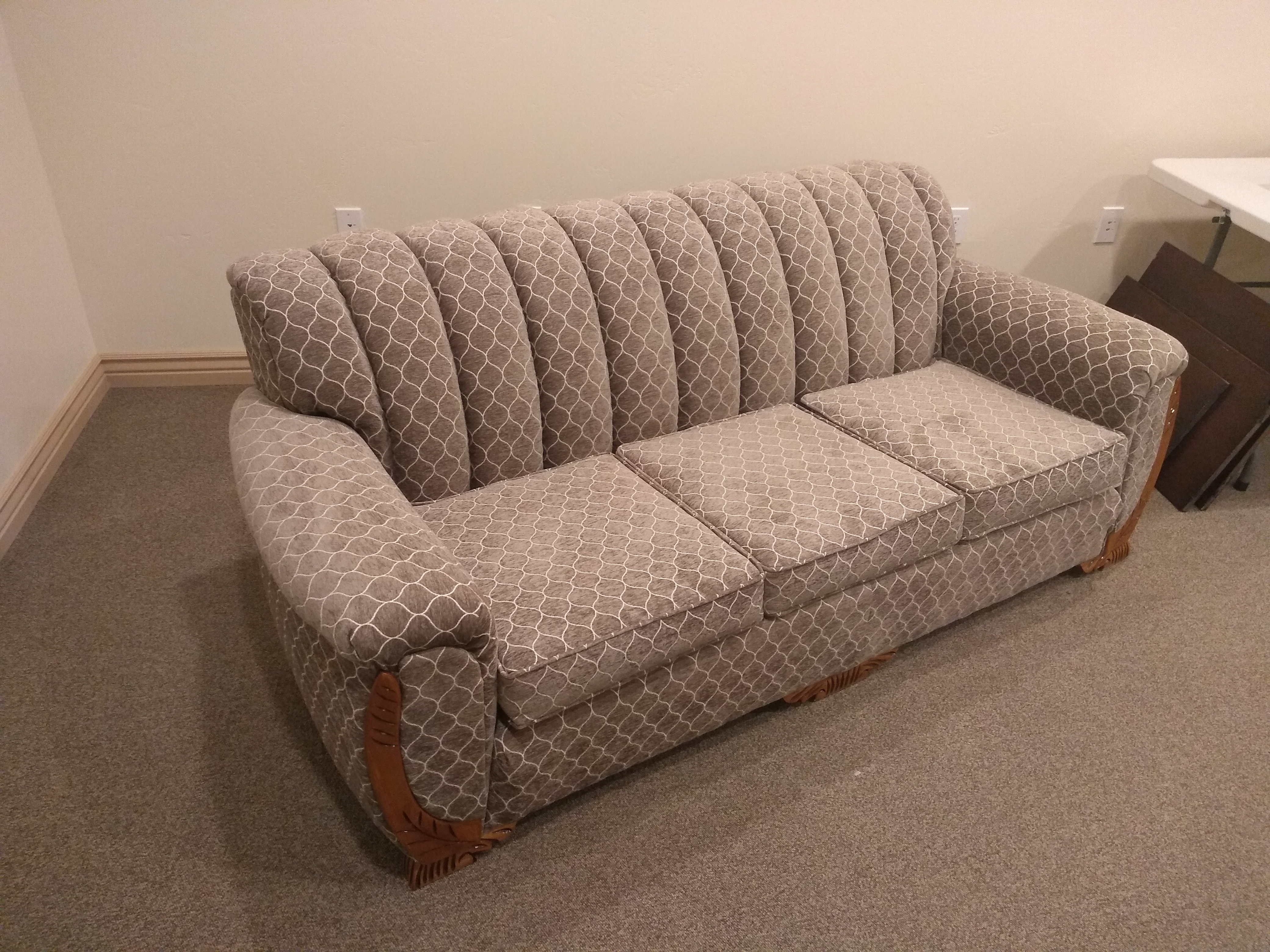 My Grandparents, Norwood Jonas and Colleen Andra, married in 1946. It is my understanding they were given a number of items for their marriage. The two main ones I remember are a bedroom set (which my Aunt Jackie still has) and a couch and chair. My Mom at some point in the past received the couch and chair. I remember them early on as a child.