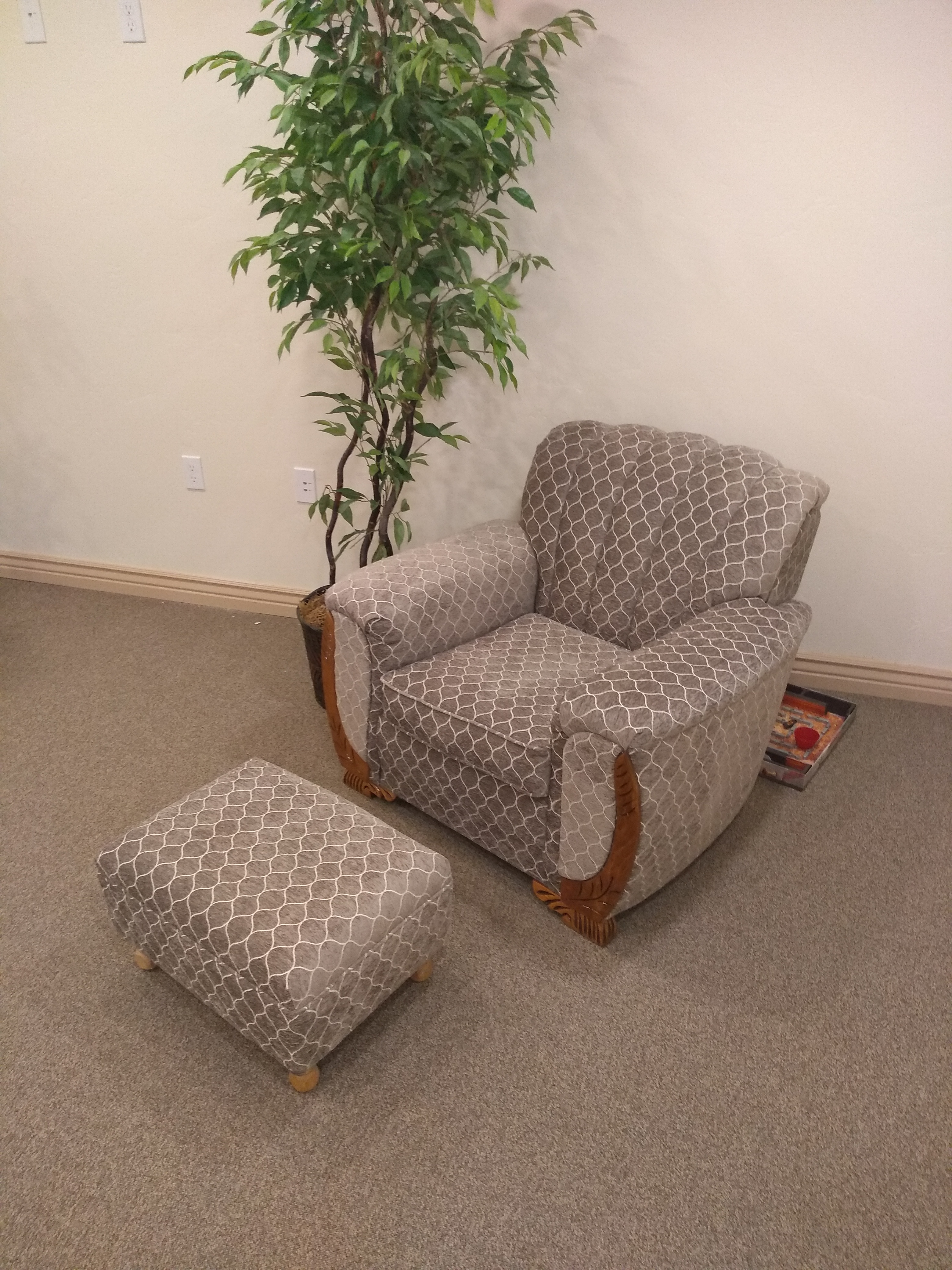 Here is a picture of the couch, chair, and stool when Andra had them at her apartment in Rupert.
