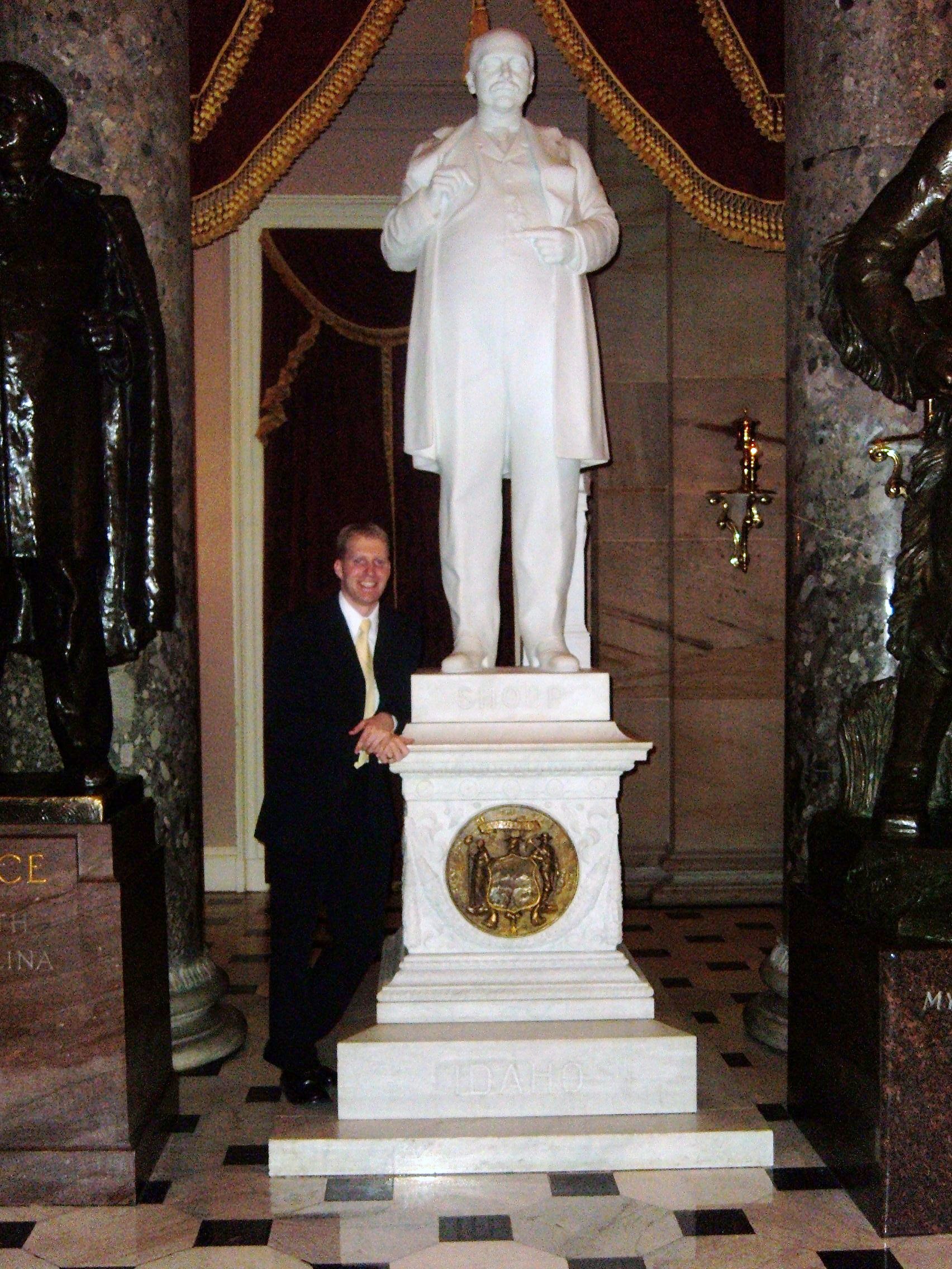 As you might be able to tell, his statue is one of Idaho’s two in the National Statuary Hall Collection located in the United States Capitol. As a side, the other statuary from Idaho is William Edgar Borah, who I could not get a photograph with due to his location in the US Capitol. This statuary was donated over a century ago. I do believe he is like many other historical figures, he was just in the right place at the right time. Shoup was appointed by President Harrison as Governor of the Idaho Territory. After Idaho became a state he was elected Idaho’s first Governor. The Idaho Legislature then elected Mr. Shoup as one of Idaho’s first United States Senators. As Governor, he only served a few weeks. He served just over 10 years as US Senator before he was defeated. Other than being the first Governor and one of the first Senators, I don’t know that he leaves any other lasting legacy on our State. But his statuary still represents us in Washington, DC.