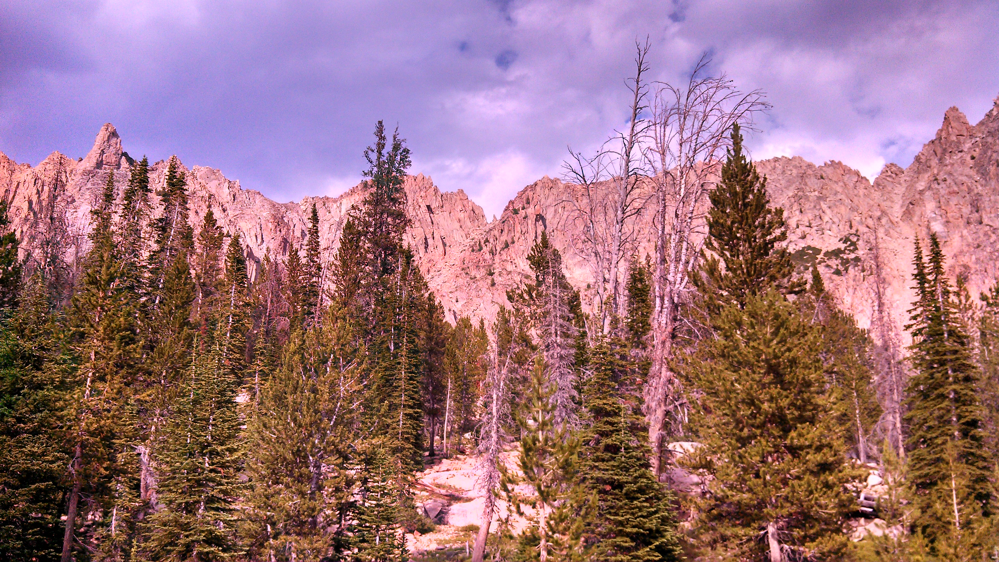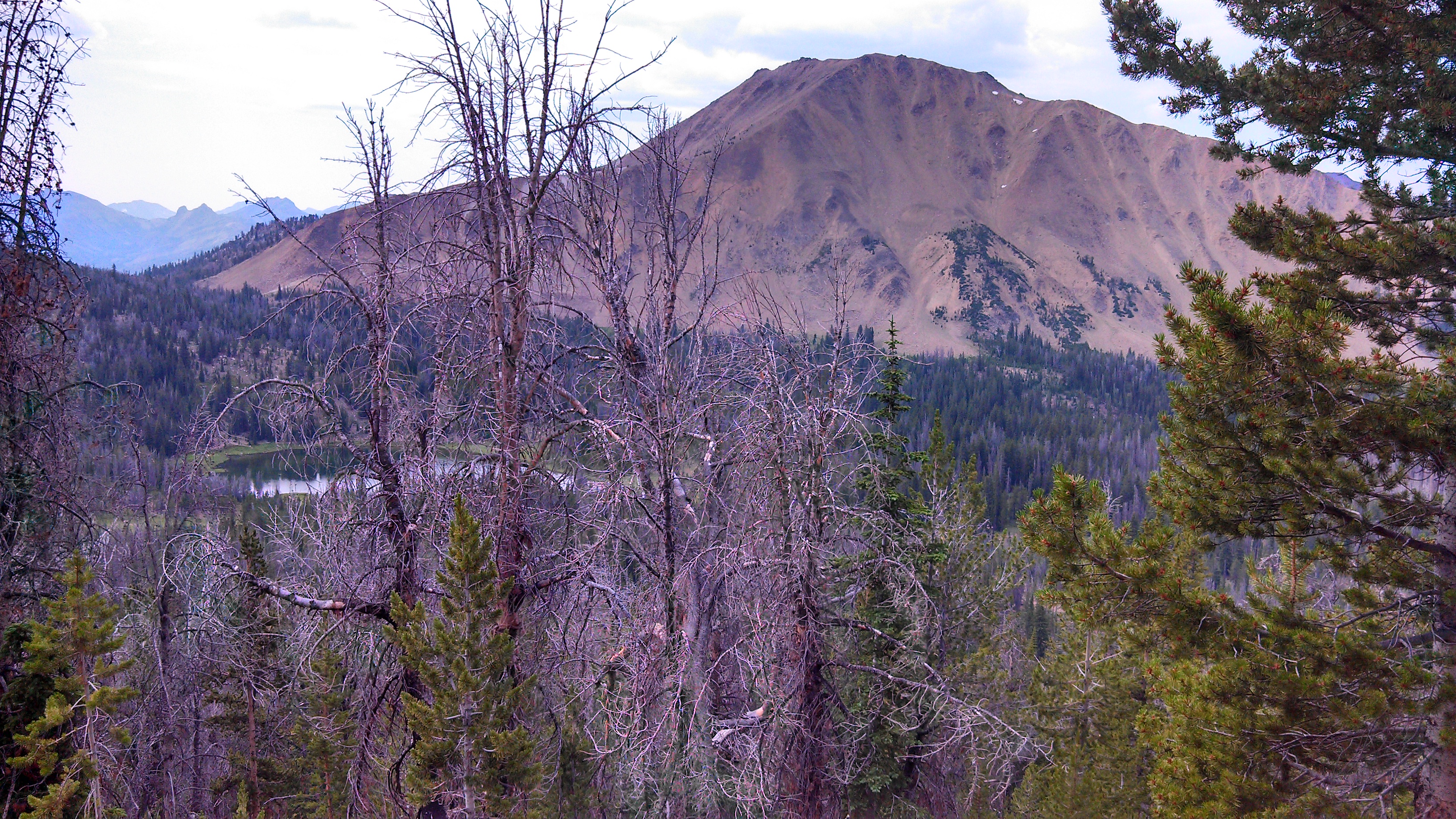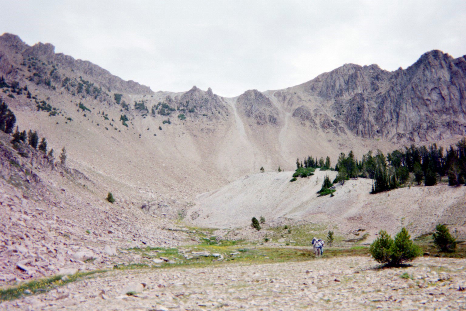 Looking toward the Born Lakes. Devil’s Staircase is the rock slide down from the deepest notch in the horizon.