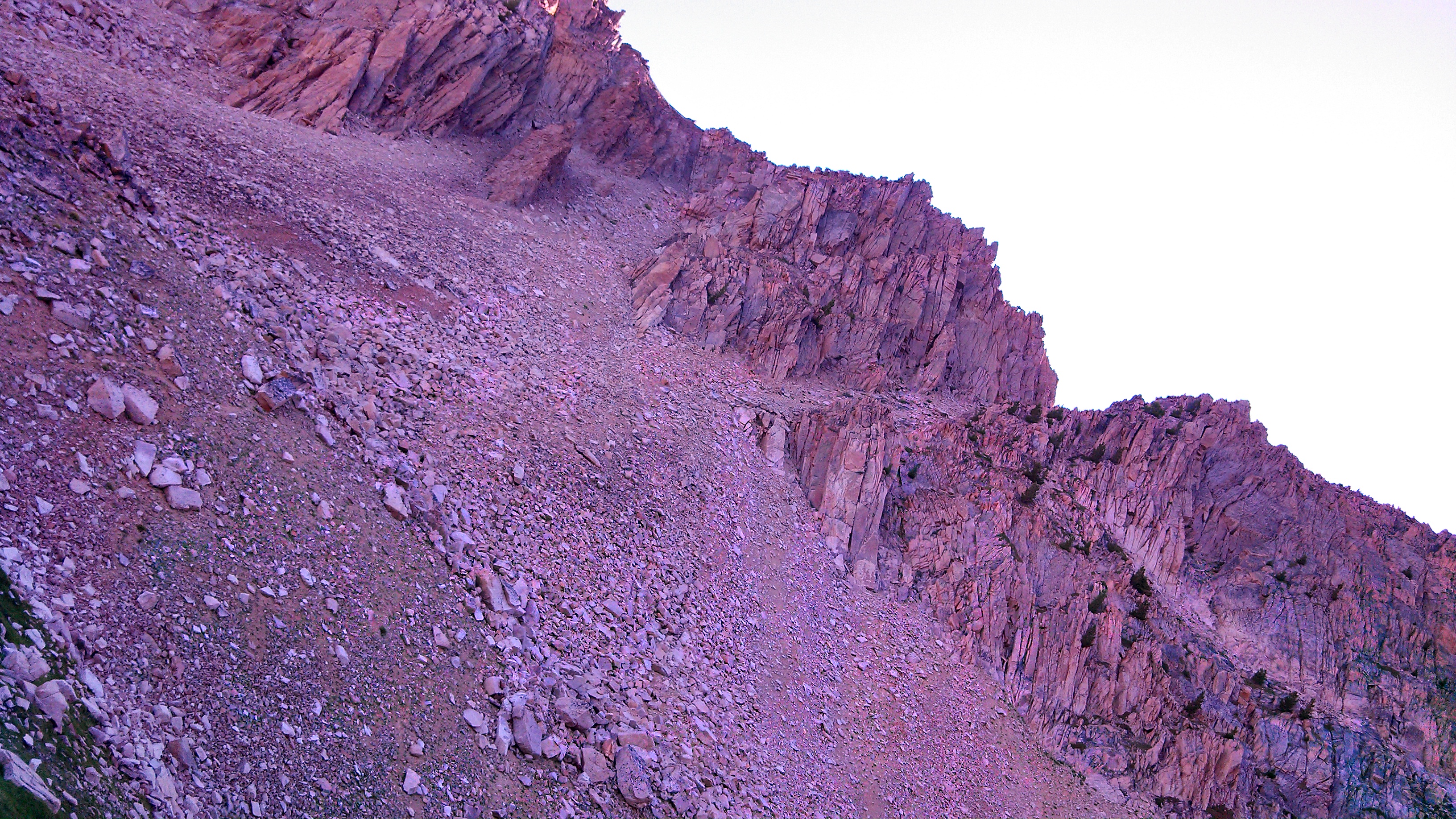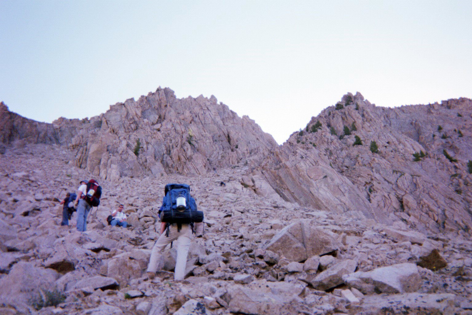 The next morning we arose, ate breakfast, and started preparing for our final ascent. We were exhausted by this point so nobody thought much of taking pictures. This is part of our climb out of camp toward the Four Lakes Basin.