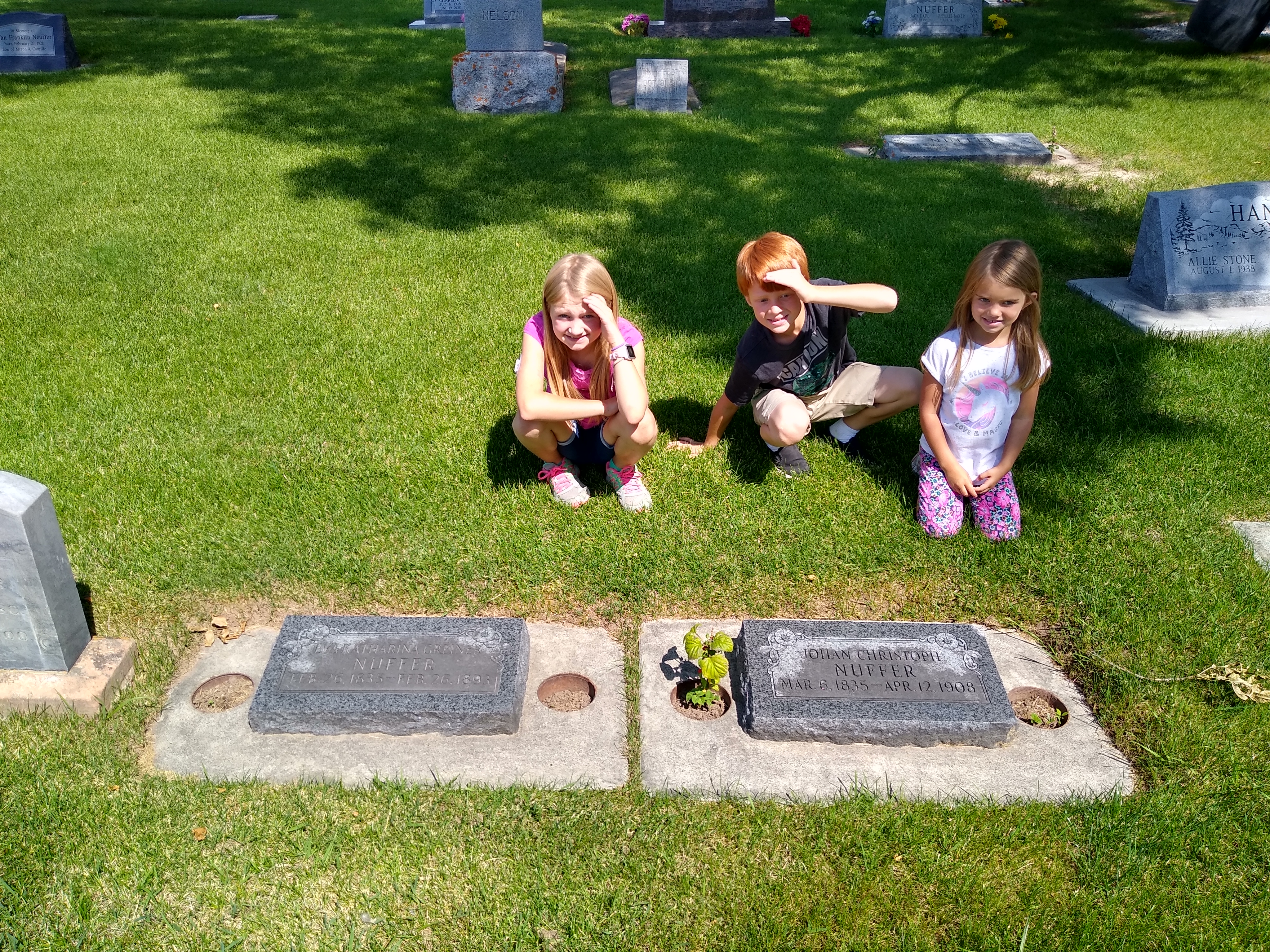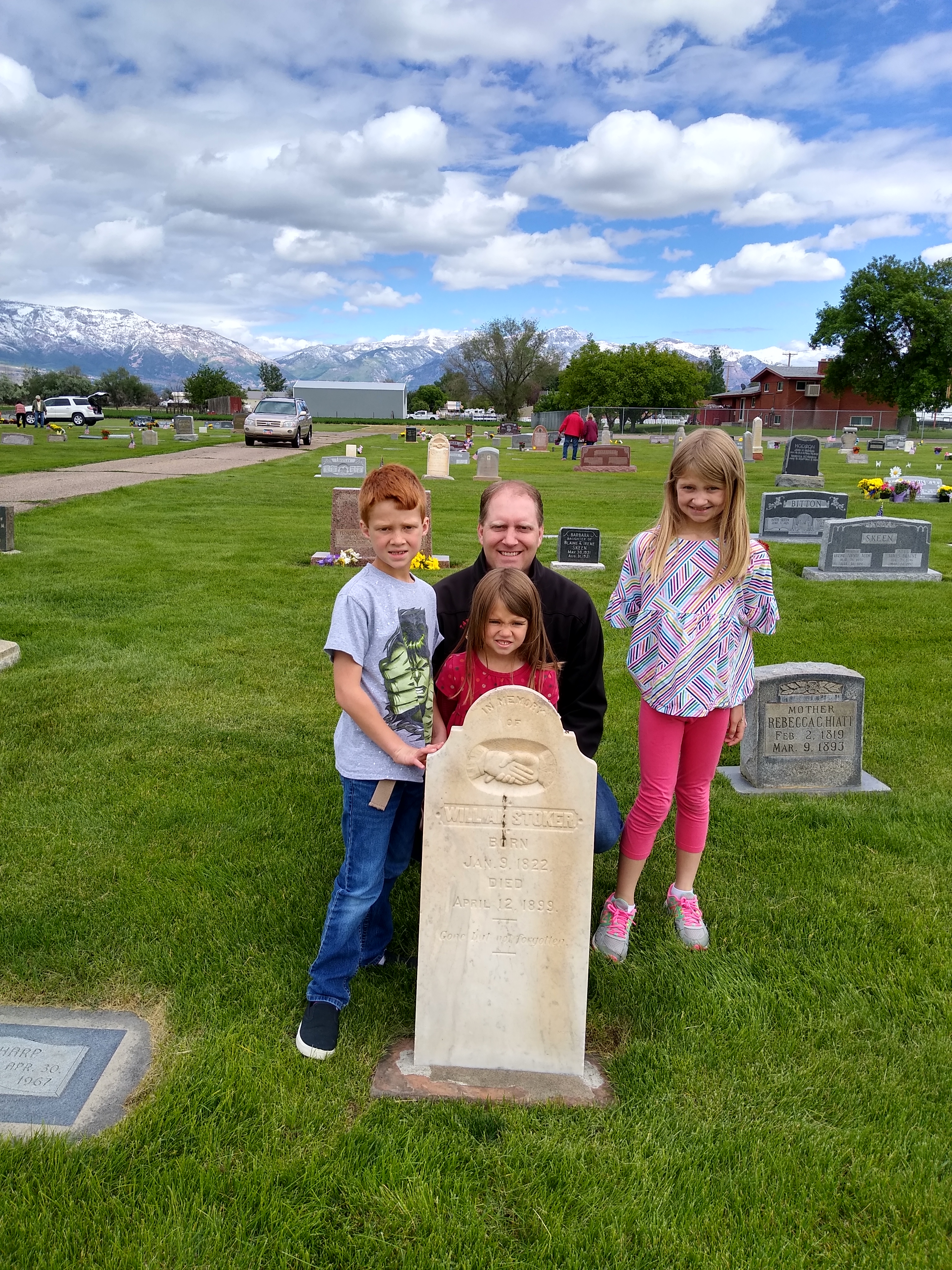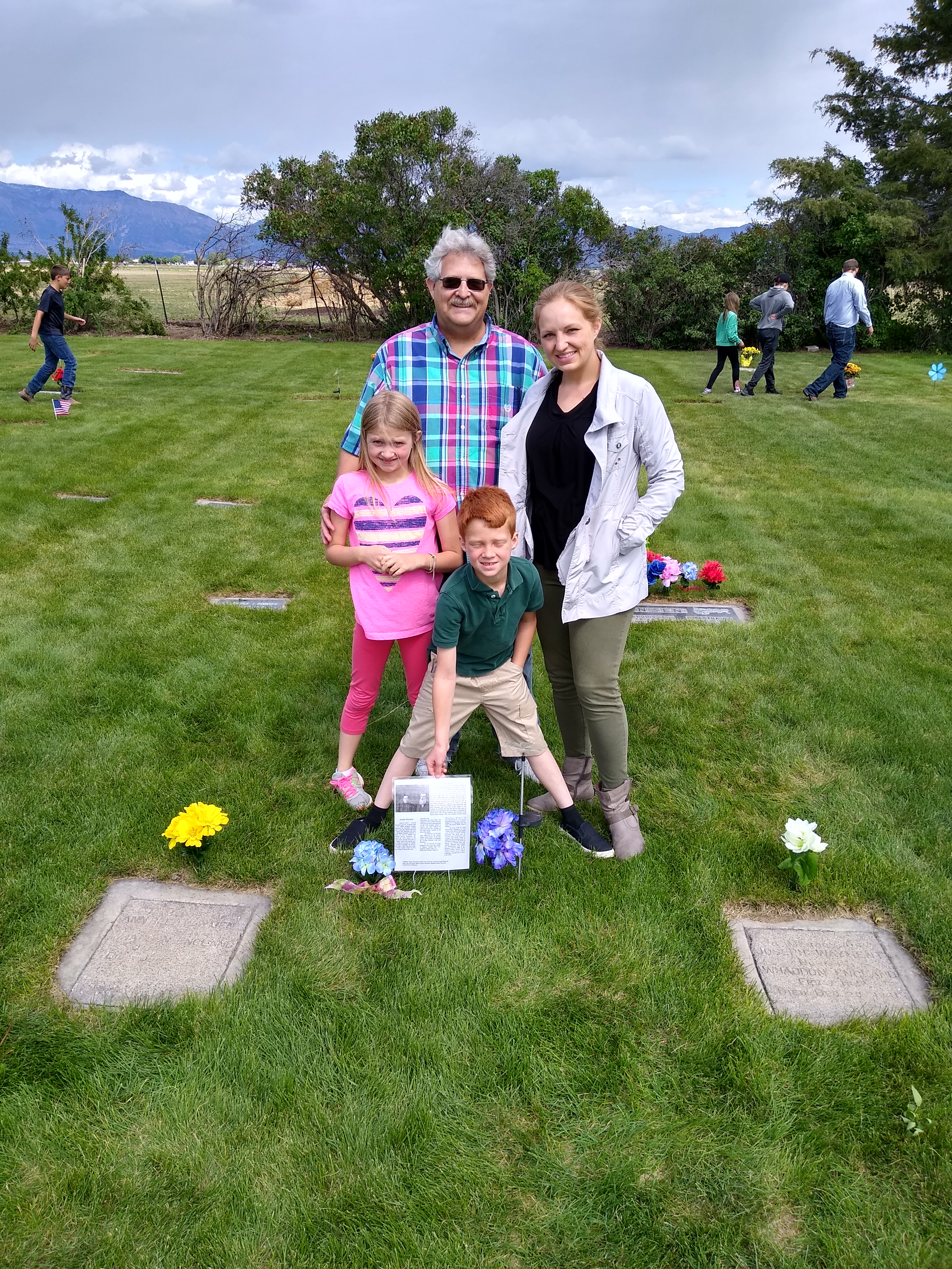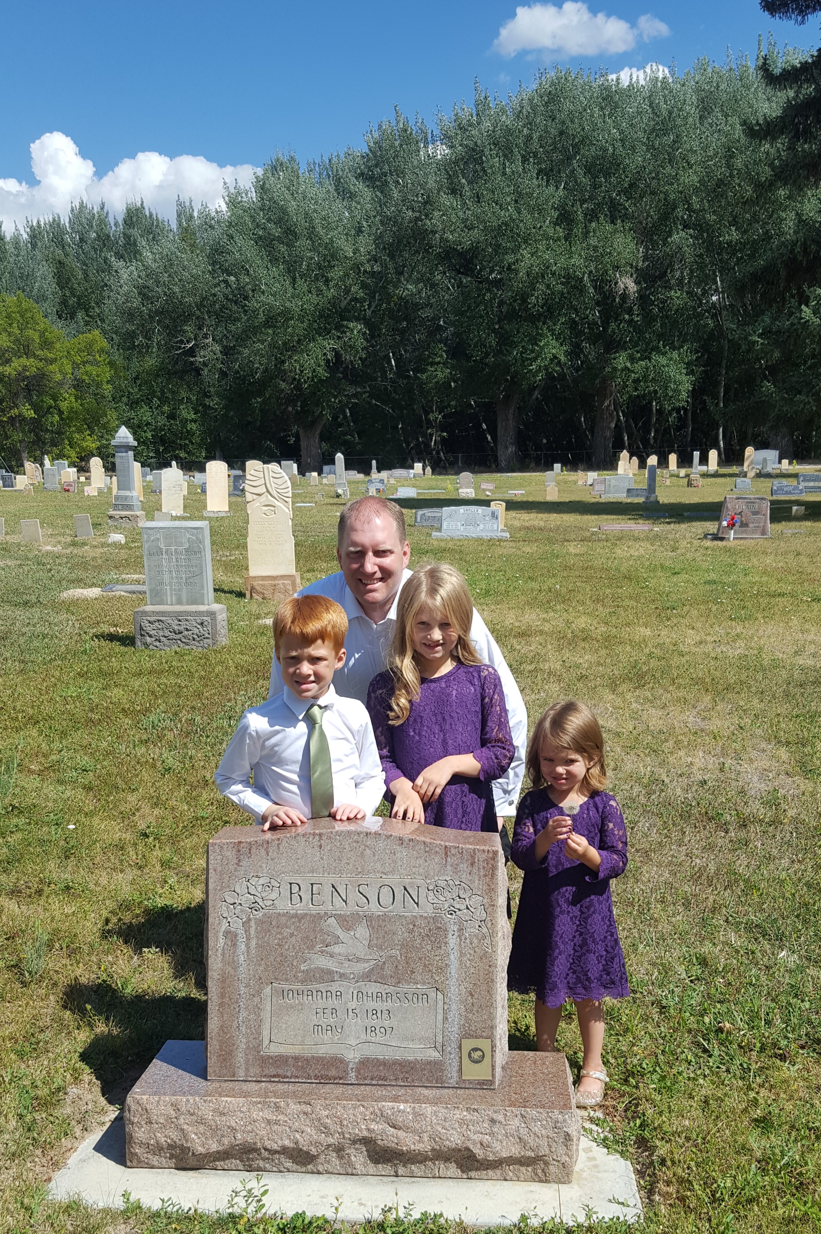 Paul, Amanda, Aliza, and Hiram Ross at the grave vicinity of James Thomas Ross