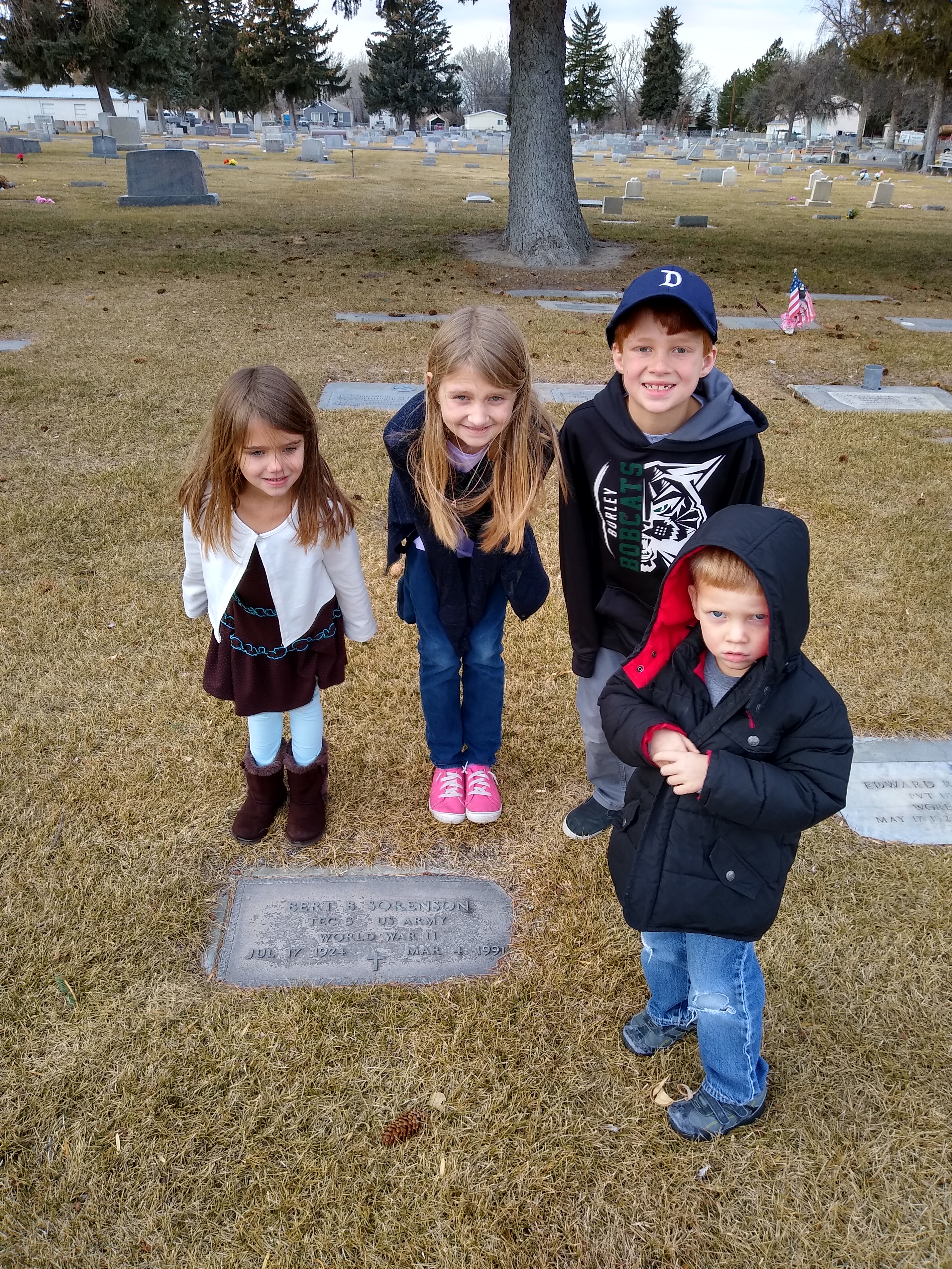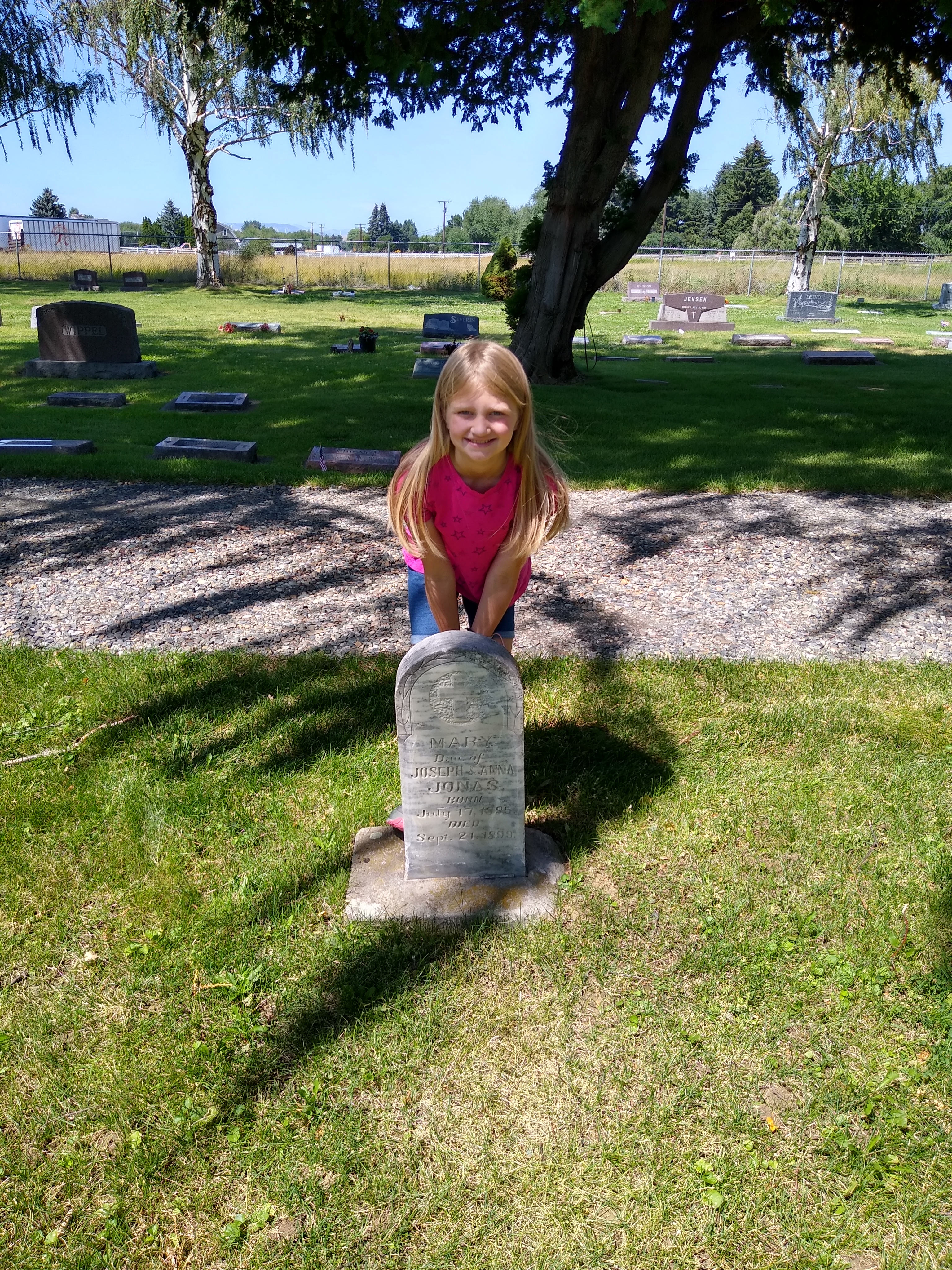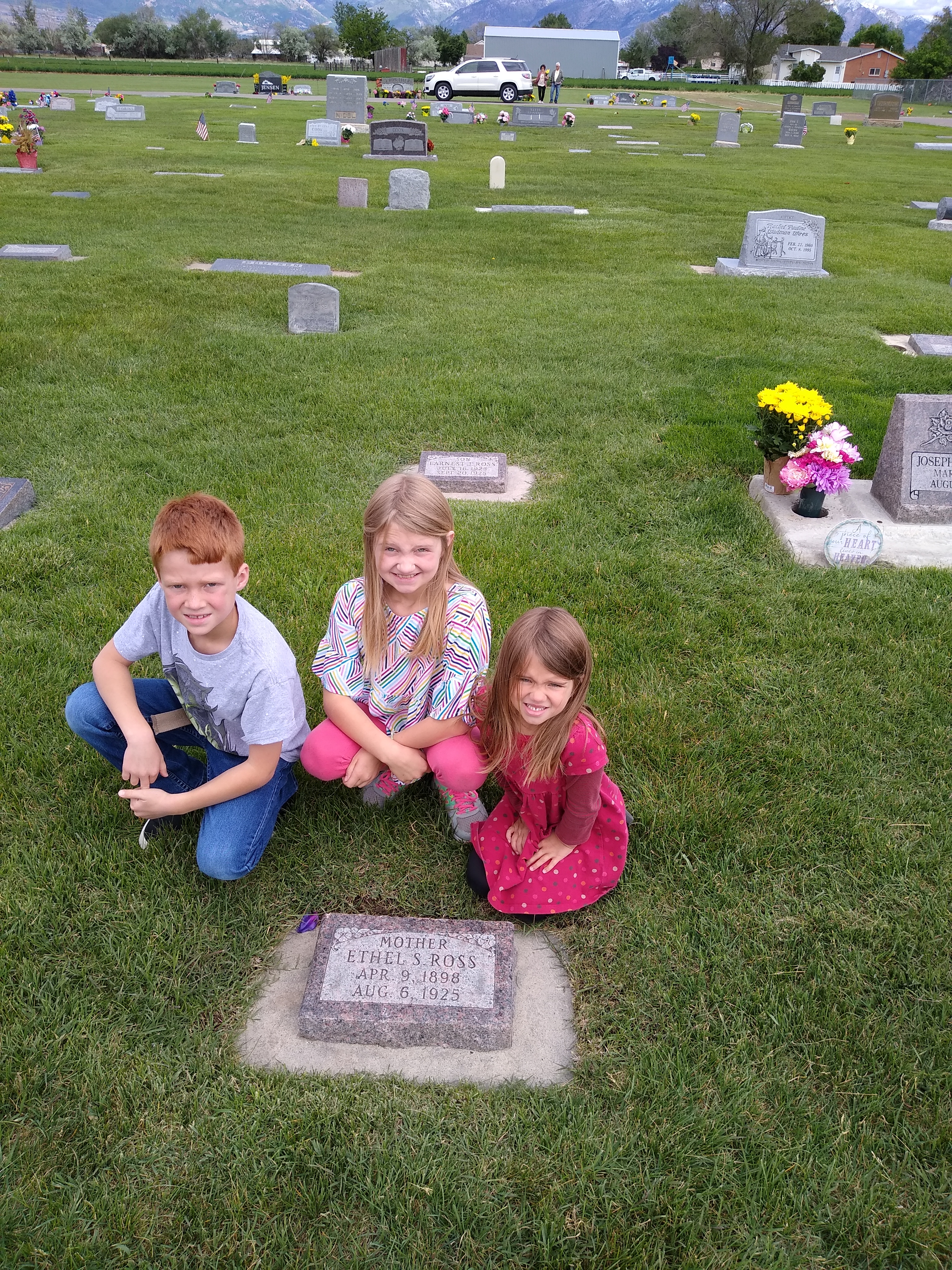 Paul, Amanda, Aliza, and Hiram Ross at the grave vicinity of James Thomas Ross