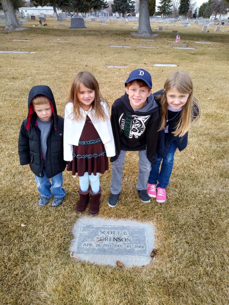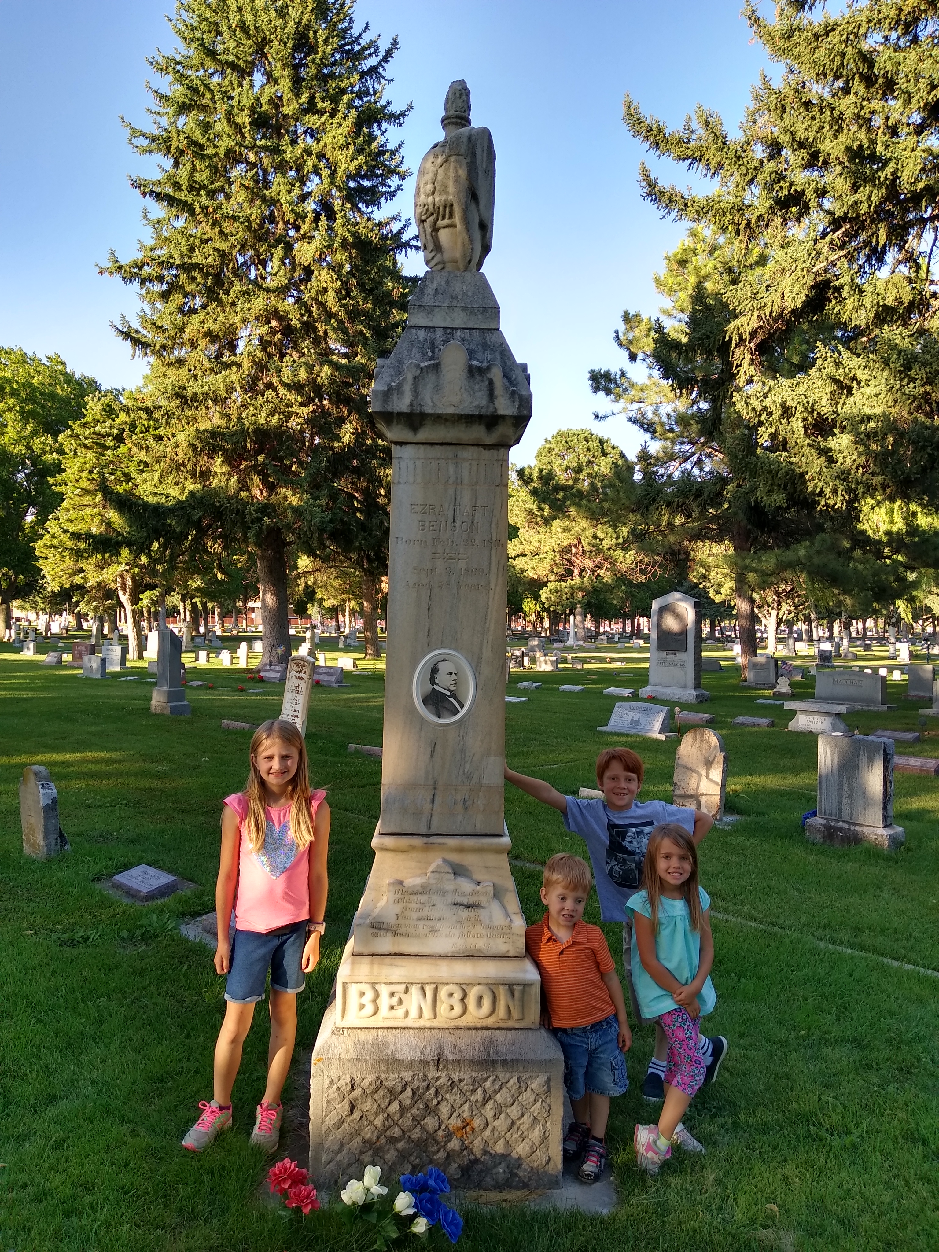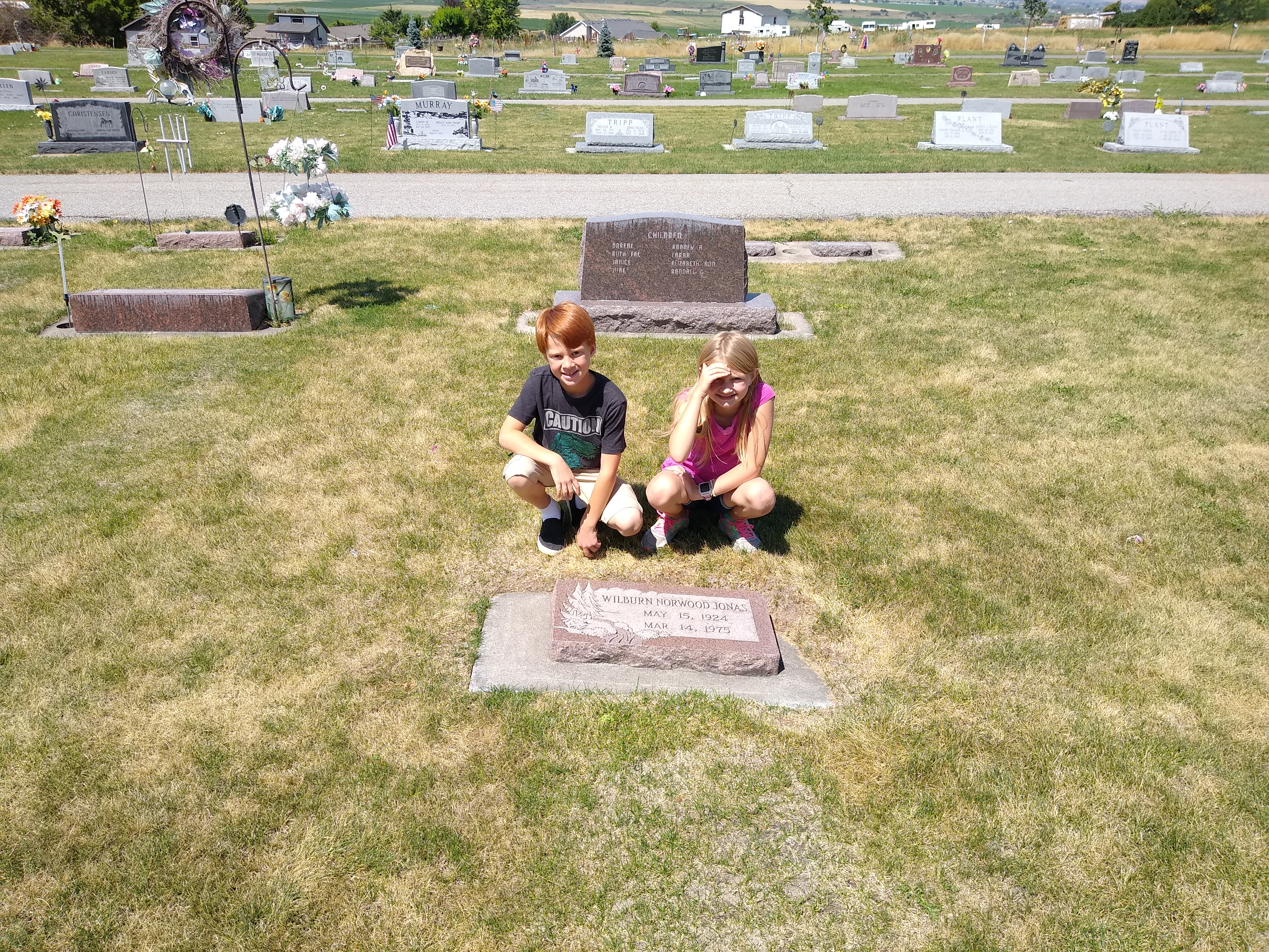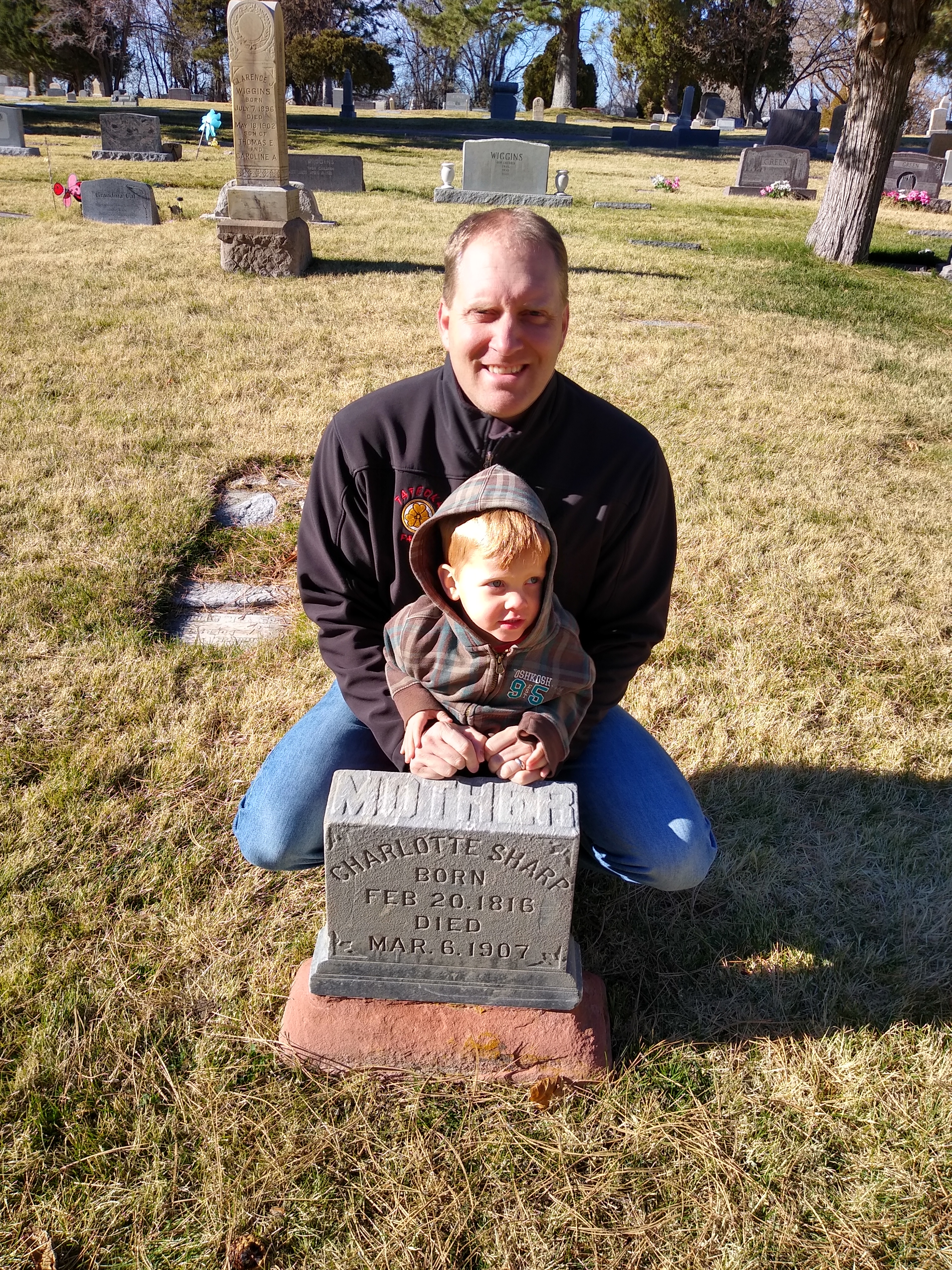 Paul, Amanda, Aliza, and Hiram Ross at the grave vicinity of James Thomas Ross