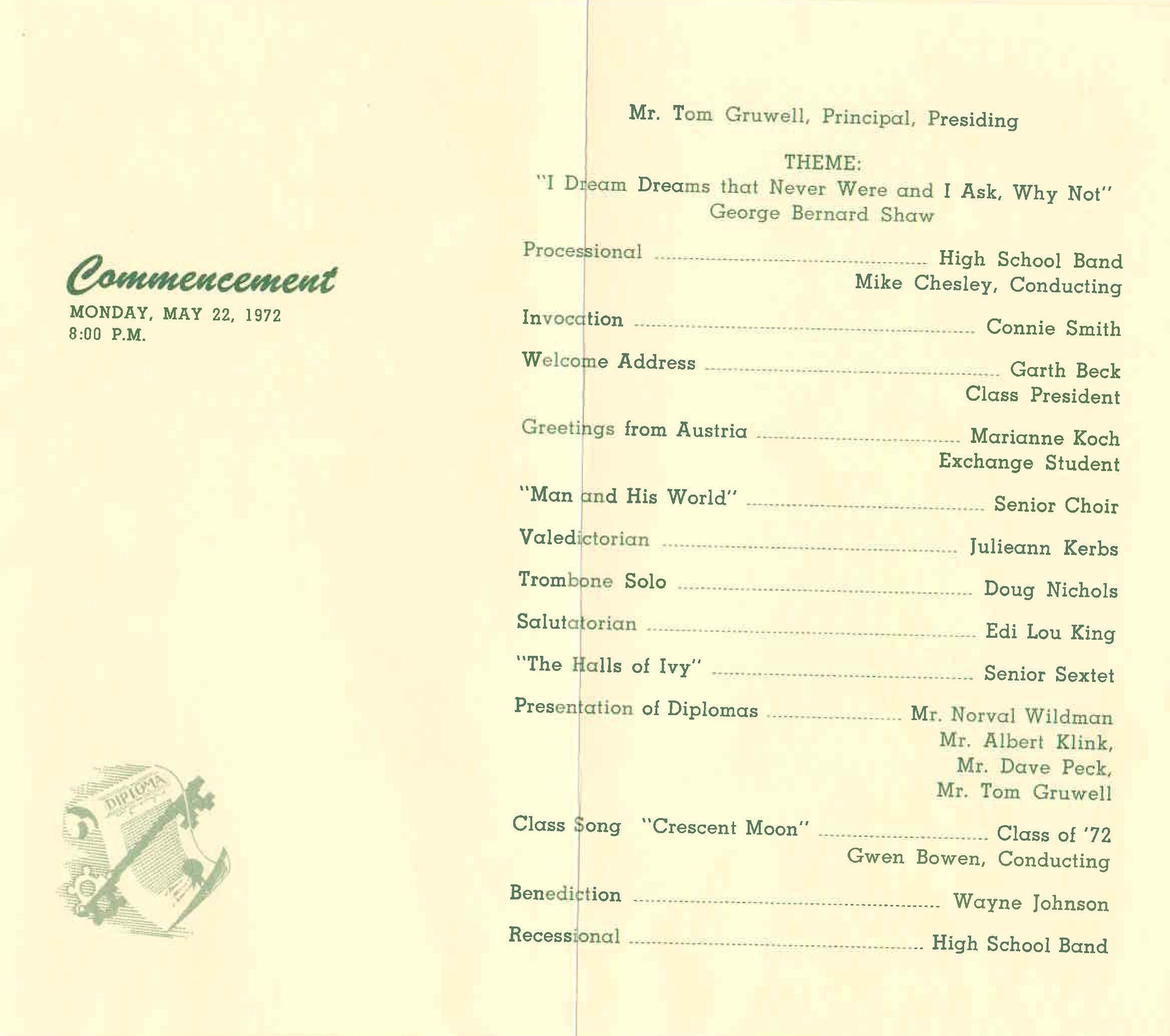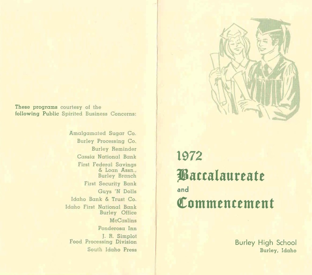 1972 Baccalaureate and Commencement – Burley High School – Burley Idaho