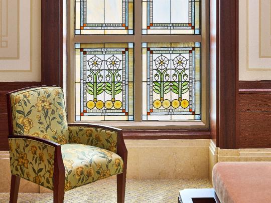 The Burley temple’s stained glass windows feature the potato plant blossom, tying local agricultural heritage into the temple’s design.