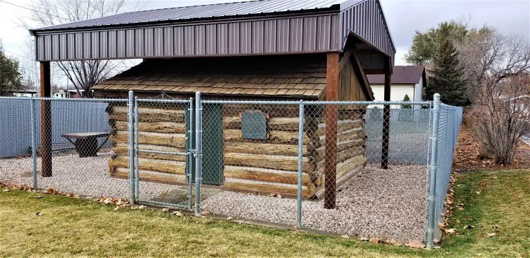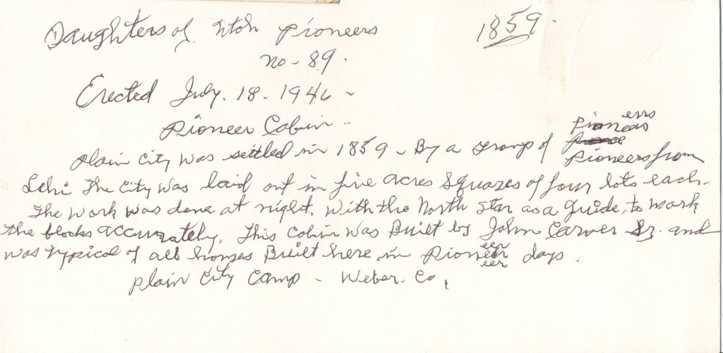 Daughters of the Utah Pioneers plague on John Carver cabin in Plain City, Utah
