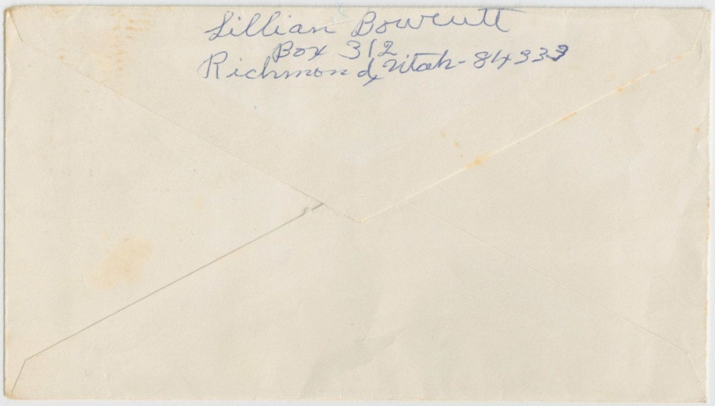 I have moved from Brooklyn, New York to Bountiful, UT. In going through stuff I found this letter written to me by your great grandmother Lillian Bowcutt (Jonas). Since it’s in her handwriting I thought you might like to have it.