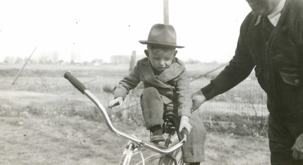 Fast forward a dozen years or so, and we find a picture of Nevin Murray on a bike being held up by Roy Davis. Young Nevin appears to be about 4 or 5 in a dapper suit and hat. Nevin Wayne Murray was born 20 May 1939 in Twin Falls, Idaho. He changed his name to Nevin Wayne Gibson and died 20 November 2003 in Miles City, Custer, Montana.