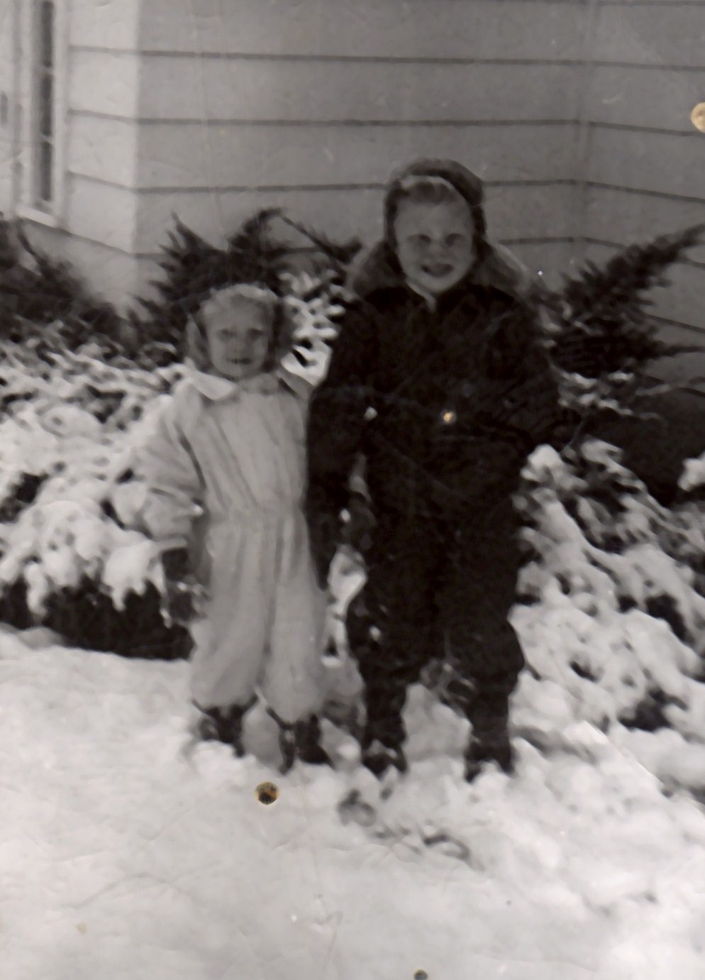 Here is another picture of Mom and Uncle Doug outside their home in Richmond.  Again, I see two cold, but happy, kids playing in the snow outside the home my Grandpa Jonas lovingly built for the family in the late 1940’s.