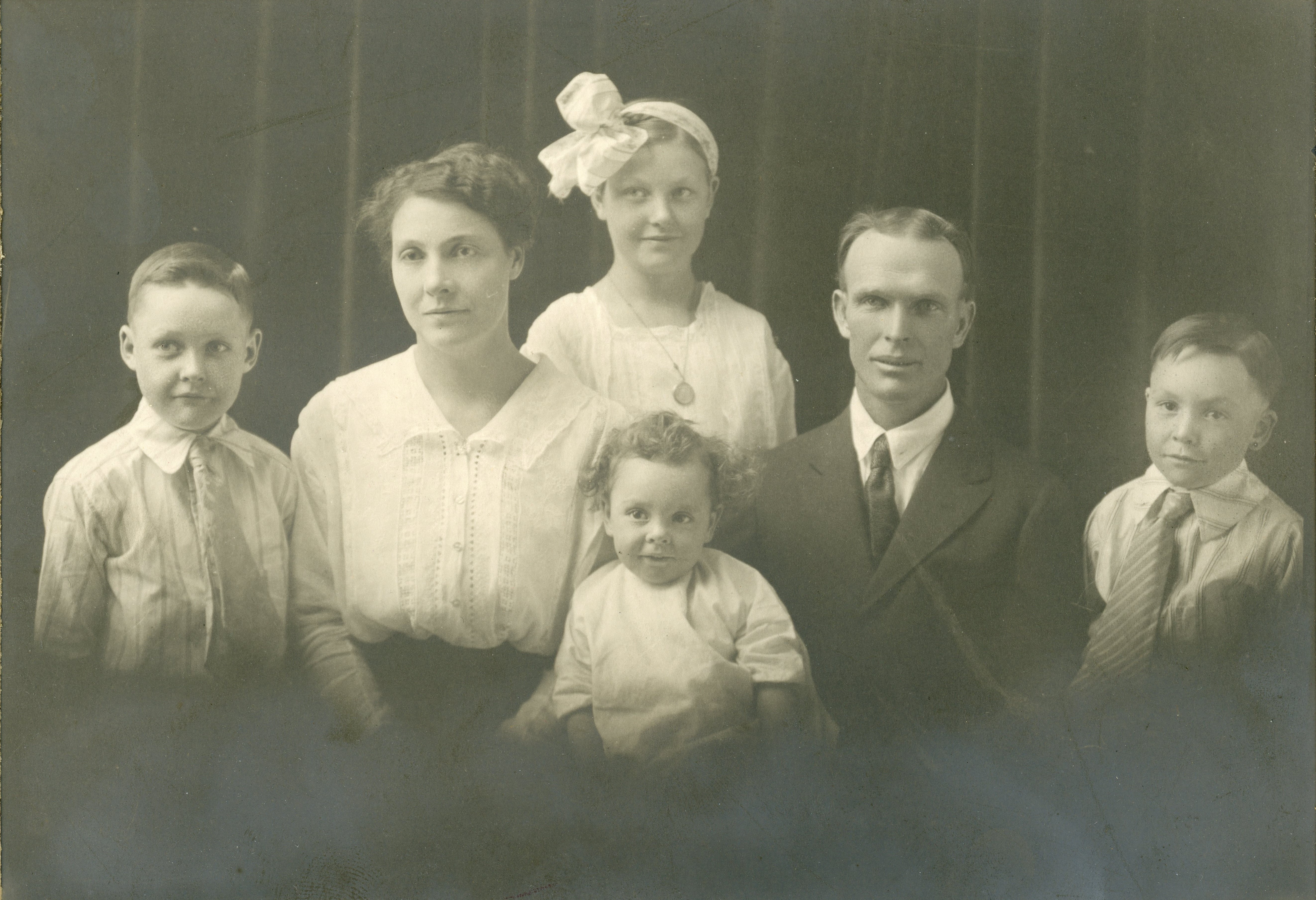 Fred and Vic Hunt with Mary, Fred, Harold, Howard, and Clara
