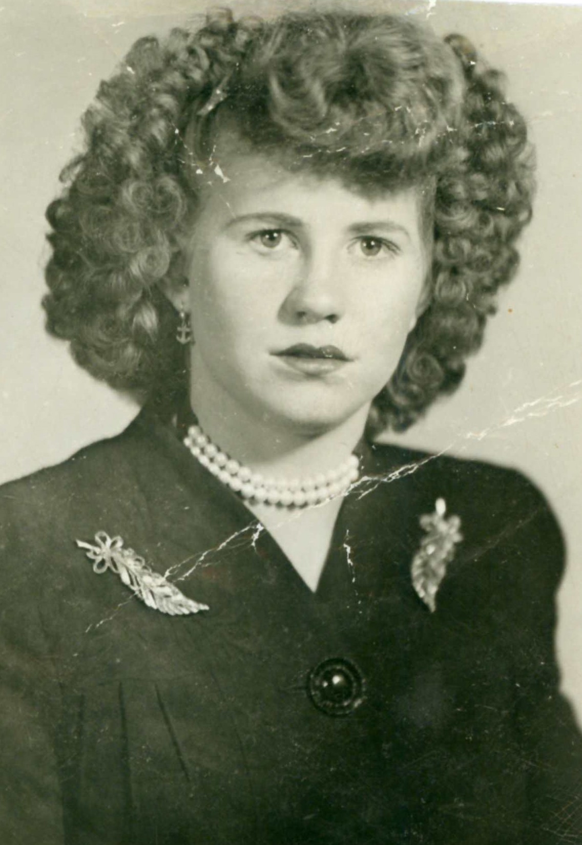 This photo of June also gives some of the weaknesses of coloring a photo. Her hair also takes a hit. Especially around the outsides. Here is a copy of a poor black and white copy I have of this same photo. The part most fascinating to me in this photo is also the reddish color to the hair. I never knew June but with dark hair, so I am not sure if she colored it most of her life. I will add a photo of her with much darker hair below. The brightness of the blue is intriguing too.