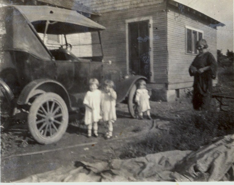 Gladys Maxine arrived 20 September 1921. Here is a picture of the three kids with Gladys against the wheel of the car.