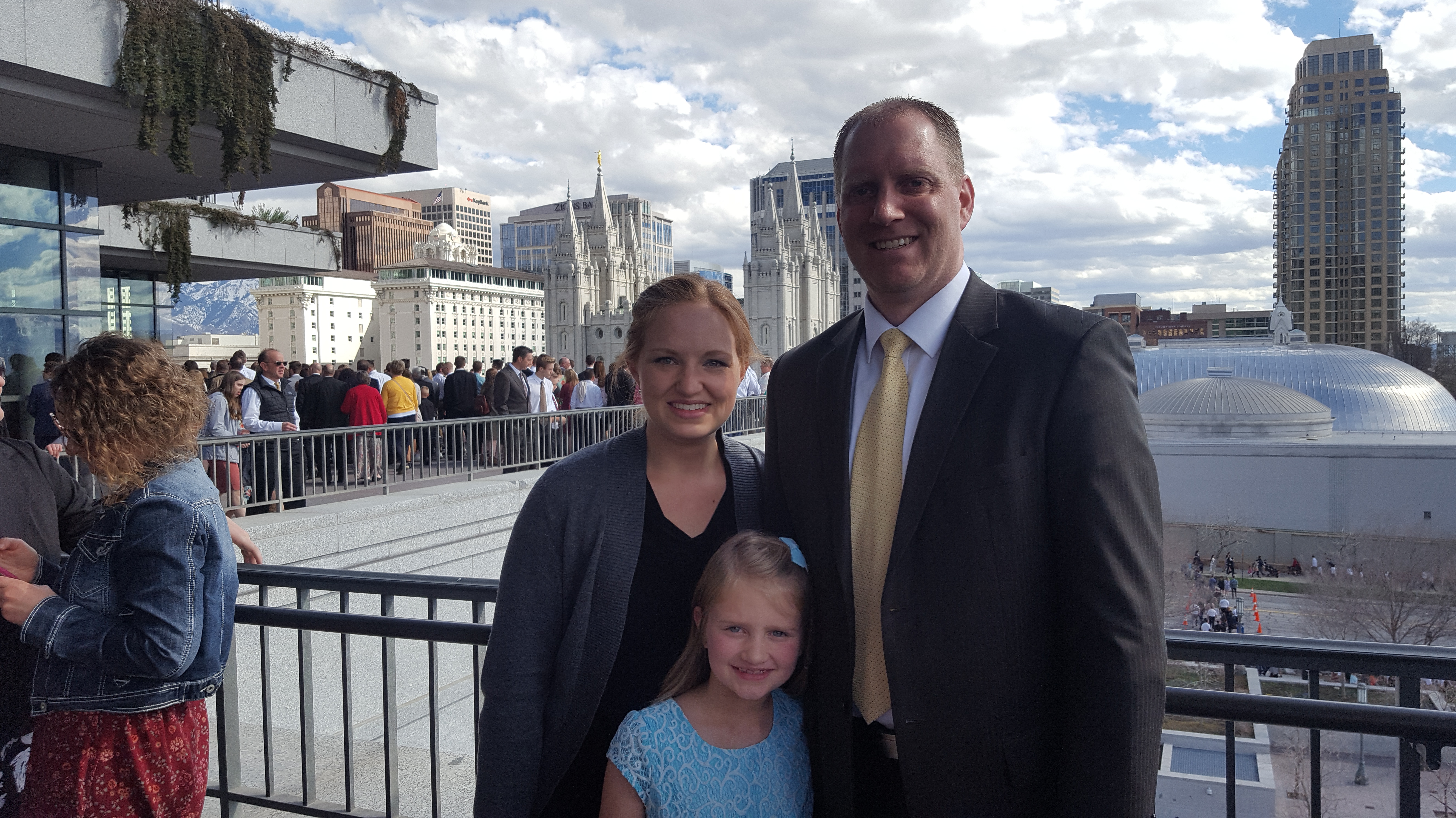 Amanda, Aliza, and Paul Ross at General Conference in April 2019