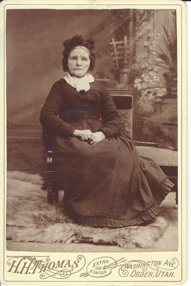 Prudence Ekins’ mother was Rebecca Burnham born 20 March 1829 in Moulton Seas End, Lincolnshire, England.  She passed away 29 September 1894 in Slaterville, Weber, Utah.  She died at the age of 65 years.  I could locate some photos of her and she was a thin, narrow faced woman.  She does not appear to have any relation to the woman in the photo.  Her location fits, her age is not quite so sure, and Thomas was operative during that time.