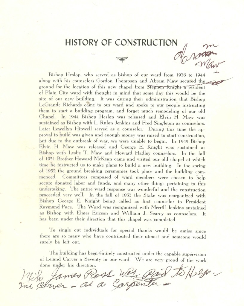 On July 3, 1958, a contract was awarded to Bert Robinson Construction Company to build lines in the Farr West and Plain City.