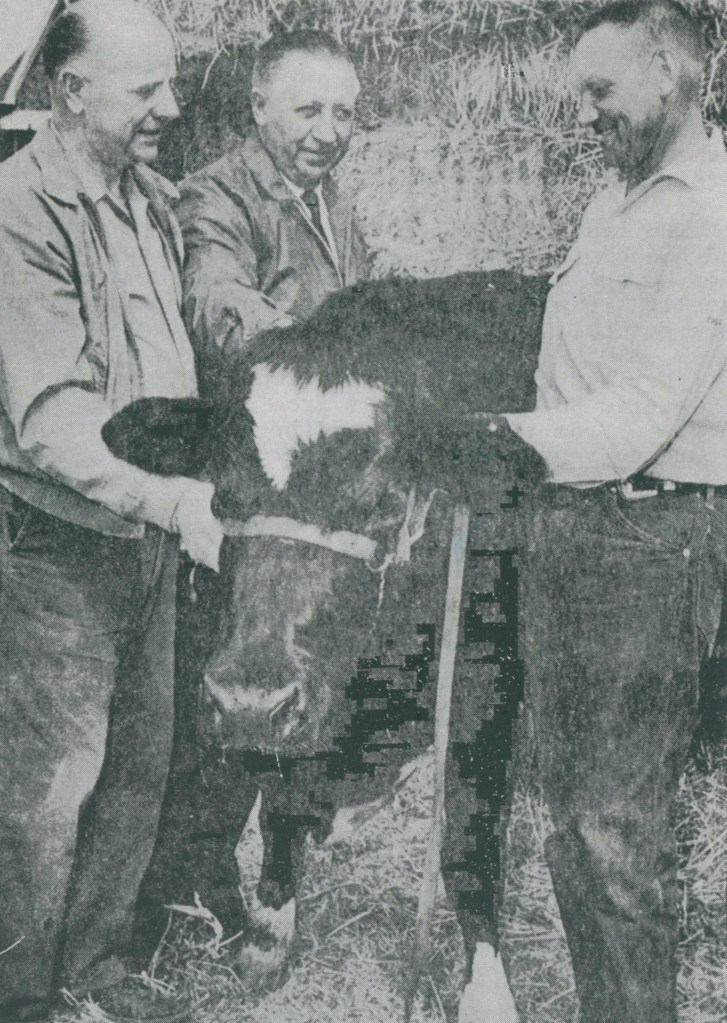 Dean was chairman of the first Potato Day Queen Contest Celebration, which was held for many years thereafter. At this celebration there were well over one hundred horses. They held horse shows, children’s races and parades. The celebration committee gave away horses and saddles and other prizes and still made $1,000 or more for the town. This was one of the biggest events of the year and everyone participated. There were wrestling matches. Flag raising ceremonies to start the day off. Later in the day, Dean held a Rodeo in his pasture just west of the town square by his barn. Many of the young boys and girls riding calves. Horse races were also held. Everyone had a great day.