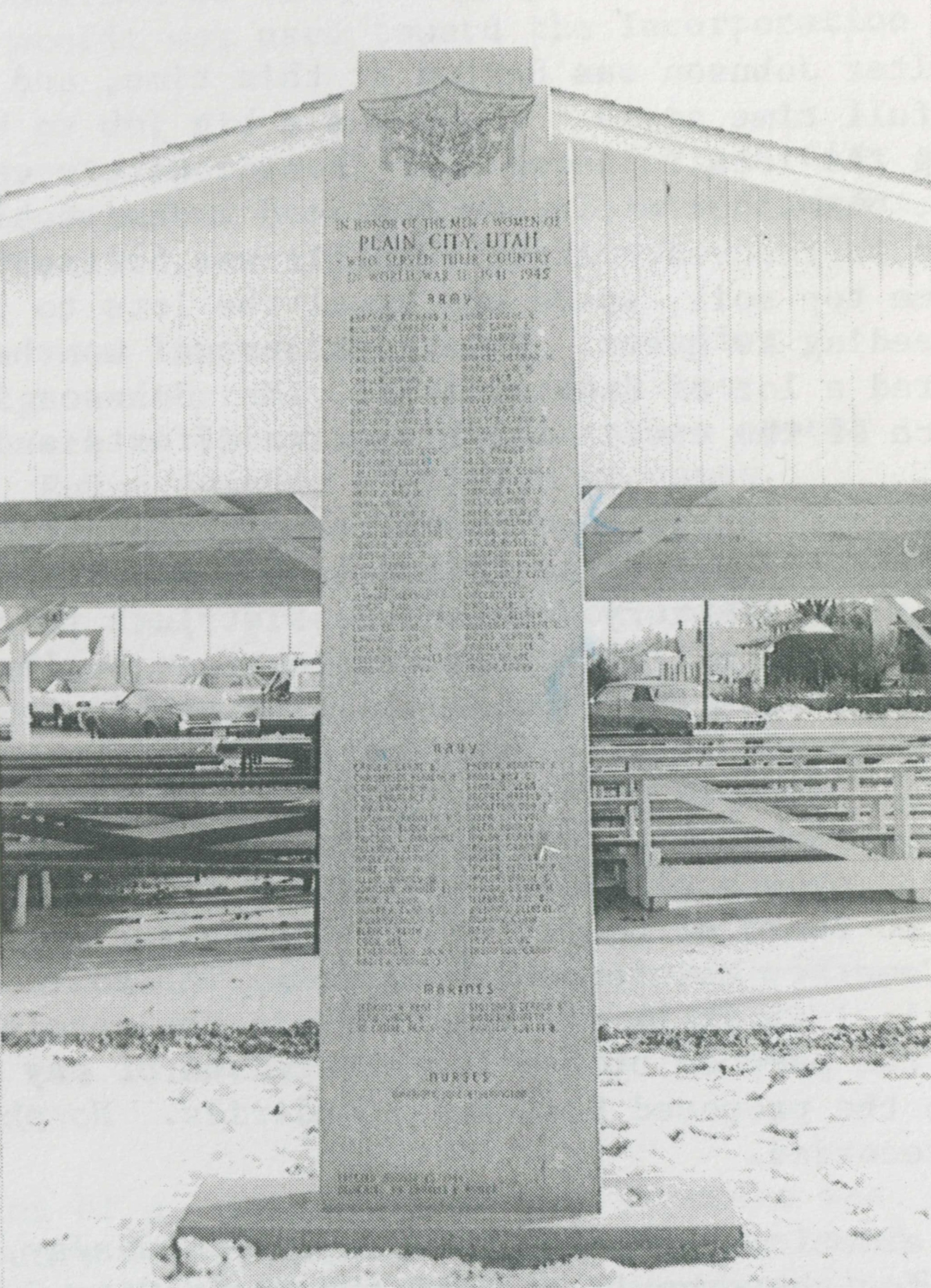 The stories are, in reality, a tribute and a compliment to the early settlers of Plain City. I cannot comprehend the magnitude of courage and strength, and the hardships those early pioneer men and women endured. How unselfishly they worked and planned for the betterment of Plain City to make it a better place for you and I to live today.