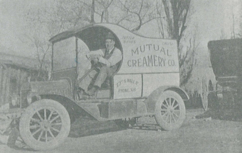Picture of Merlin England Milk Truck in front of the Cream O’ Weber Diary located between 25th and 26th Street on Ogden Avenue. He hauled milk for many, many years. Many people would ride into town and home with Merl England in those days.