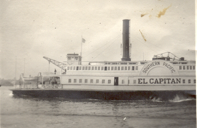 The El Capitan was a ferryboat (982 tons) commissioned by the San Francisco & Oakland Railroad in 1868 and built in Oakland.  This ship was still in service as of 1919, which seems pretty impressive for the longevity of a ship.  SF&O was later absorbed into the Southern Pacific Railroad.  While El Capitan had served the San Francisco to Oakland route for many, many years, by 1919 she was serving Vallejo Junction to Vallejo.  I could not find out when she quit service.