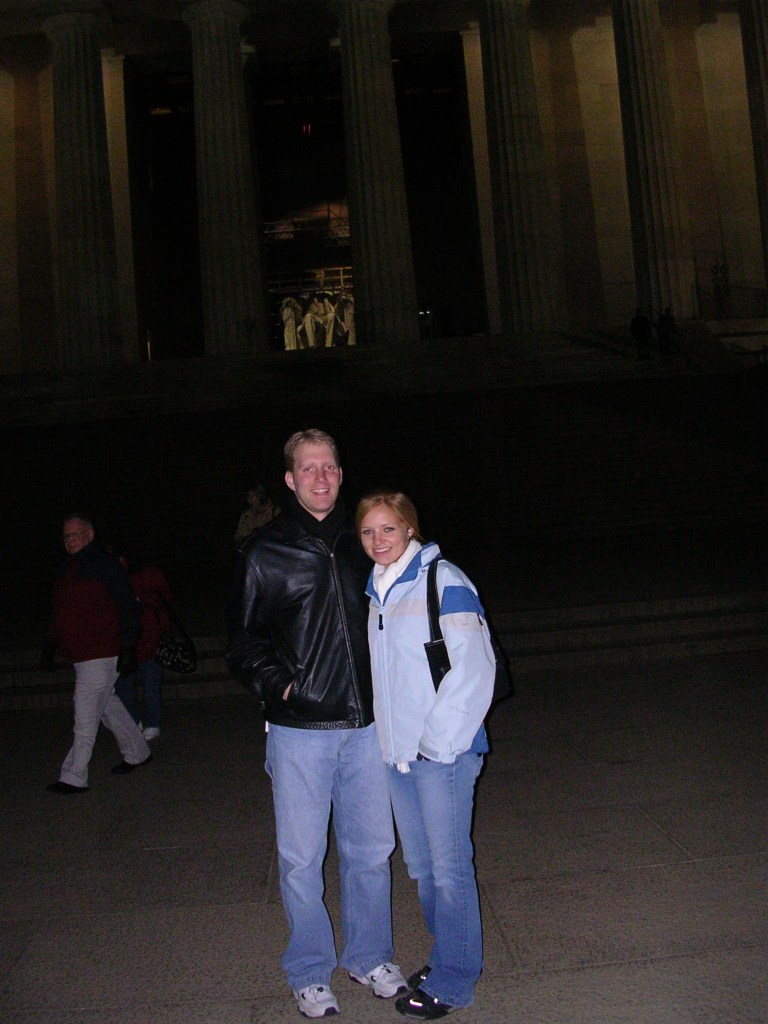 Amanda and Paul Ross with Washington Monument in background 2005 from Lincoln Memorial
