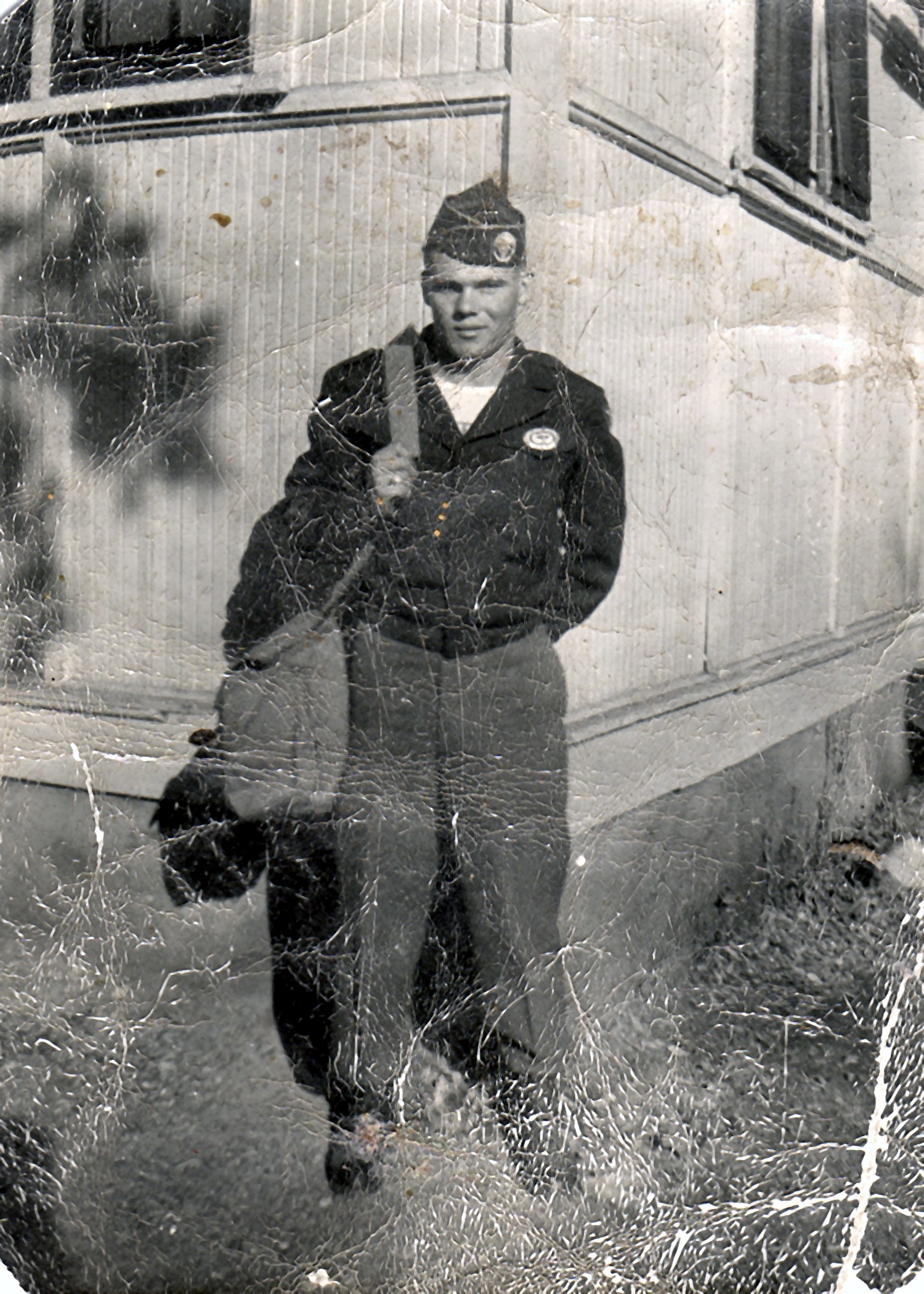 Irwin joined the army 6 July 1939 and immediately left for training. He eventually married Mary Elizabeth Popwitz 17 June 1943 in Rochester, Olmsted, Minnesota.