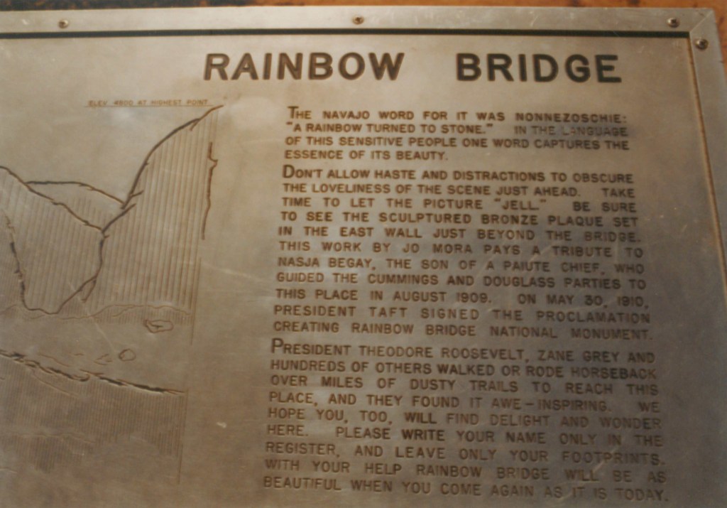 He also did the trip while the Glen Canyon Dam was under construction. They had to take their canoes out and hike around the dam construction and put back in below. When they were passing the canyon where Rainbow Bridge is located, they had to pull out and hike all the way up the canyon and then climb up on top of the bridge.