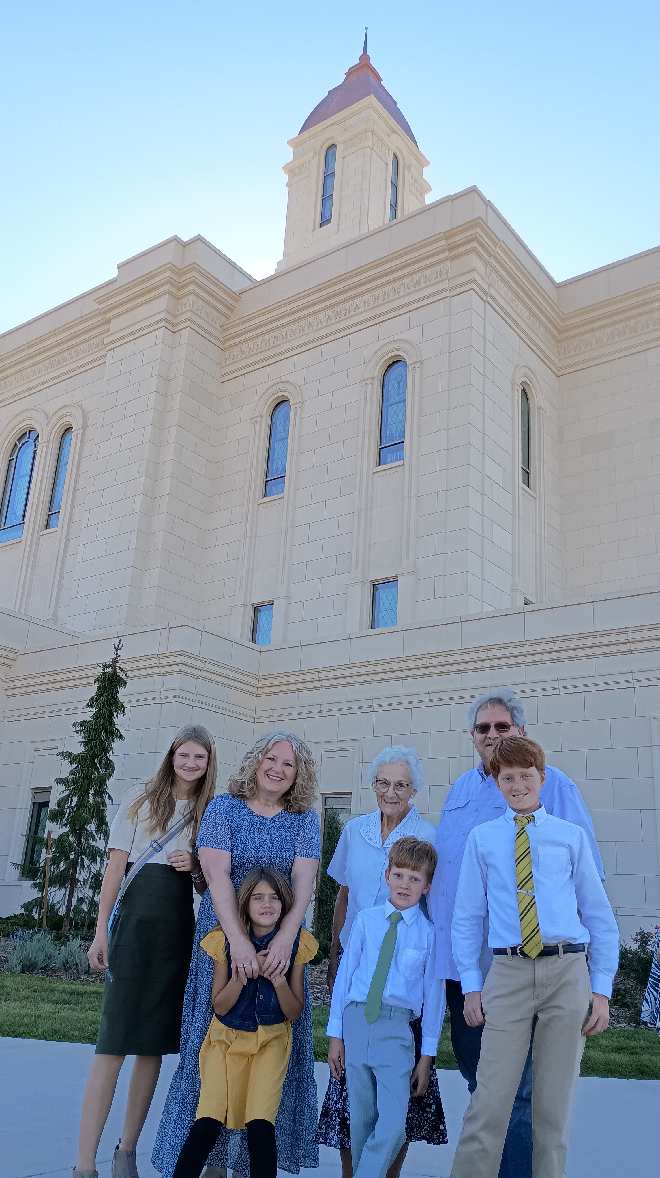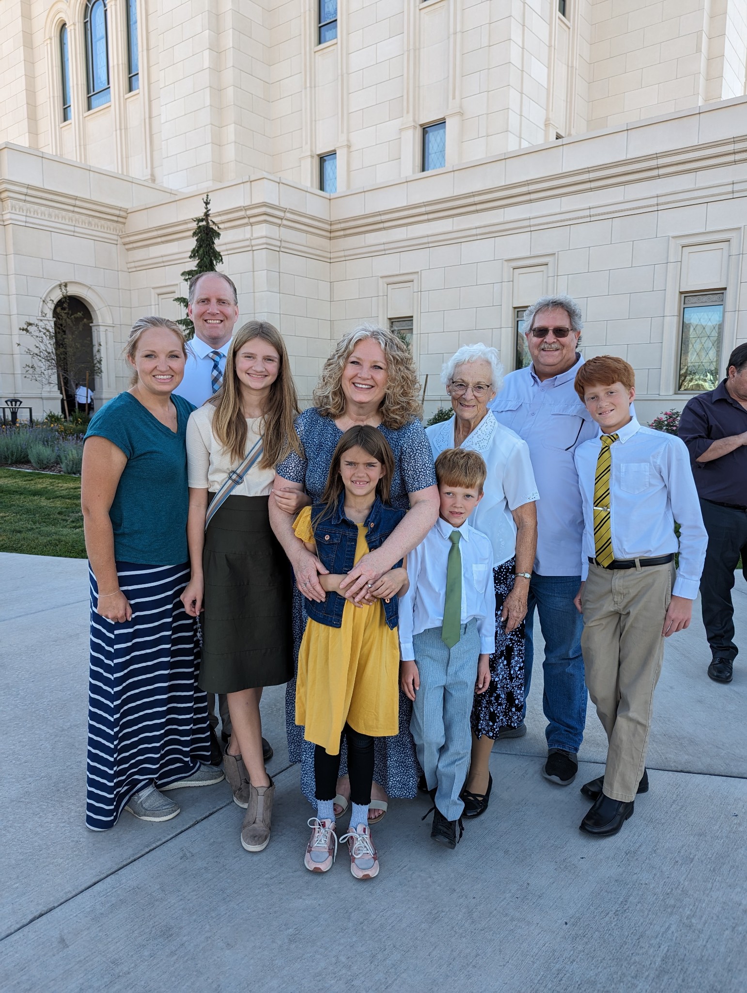 11 October 2024 – Deseret Peak Utah Temple – Paul Ross, James Ross, Amanda Ross, Hiram Ross, Aliza Ross, Jill Hemsley, Lillie Ross, Bryan Hemsley, Shanna Thompson