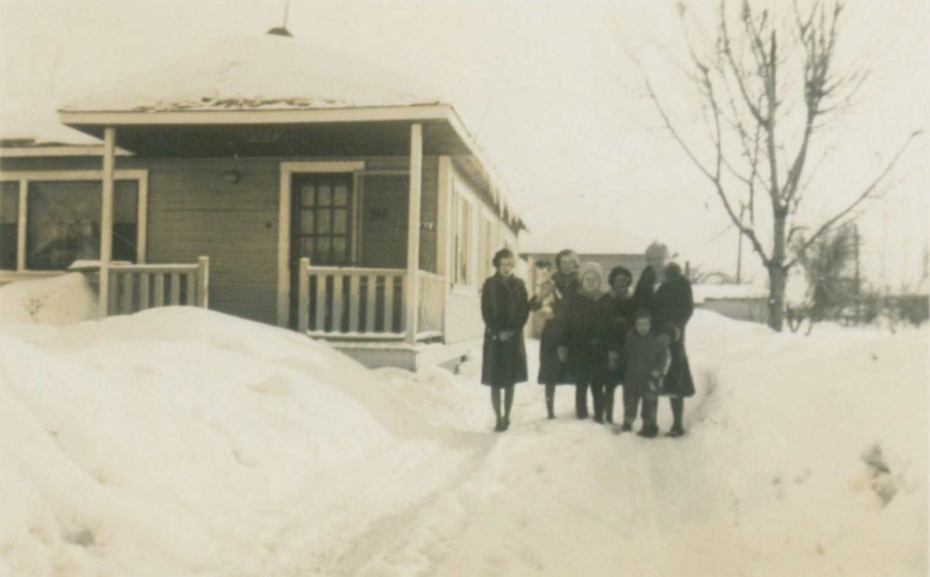 This next one is fun as it shows how deep the snow got in December 1933. The whole family his bundled up, but some also appear in dresses.