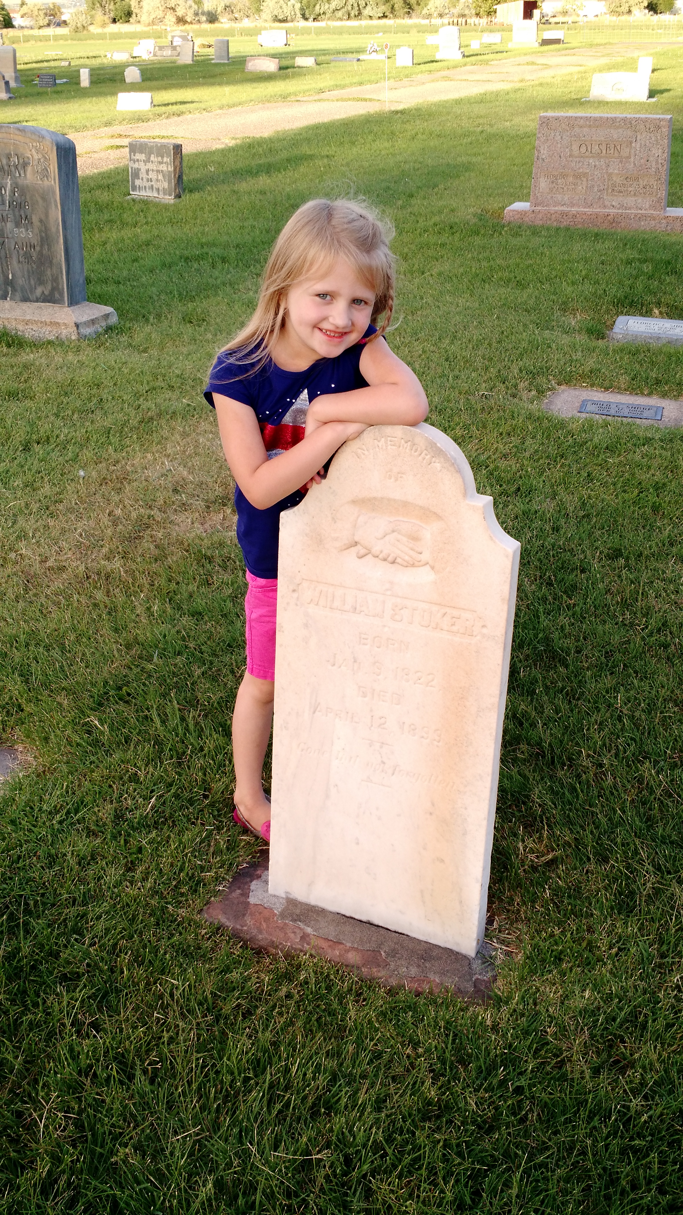 I started walking back toward the car and Aliza wanted to go back over by William Stoker.  I told her we did not have any more family graves over in that part of the cemetery.  She insisted, “we didn’t stop at the other family tombstone for a picture.”  Knowing there was no other family over there, I followed her so she could see for herself.